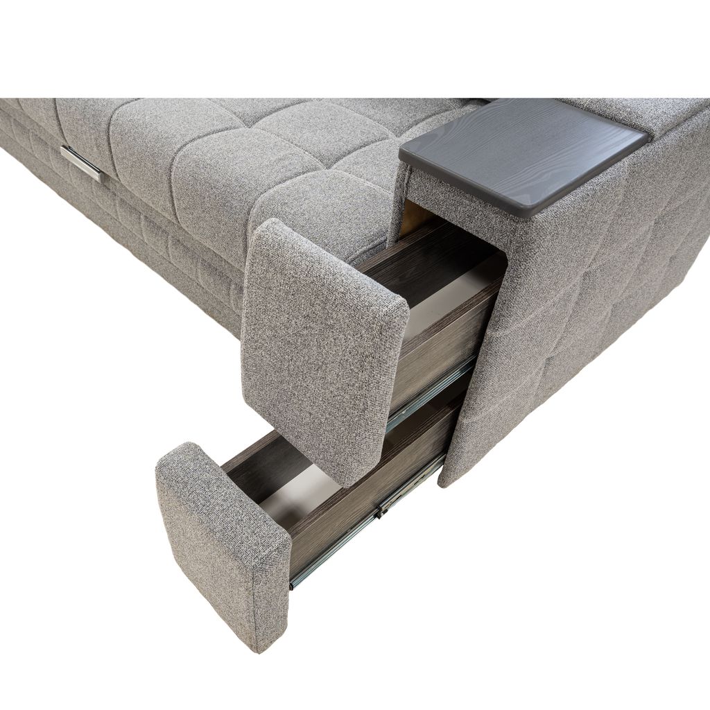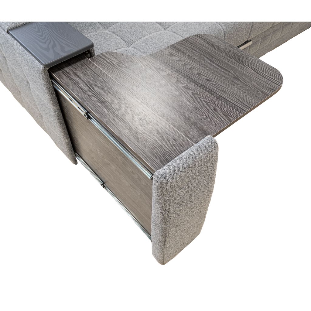 - Складной столик в подлокотнике: удобное решение для создания рабочей зоны или обеденного места прямо на диване. Легко складывается и не занимает лишнего места.