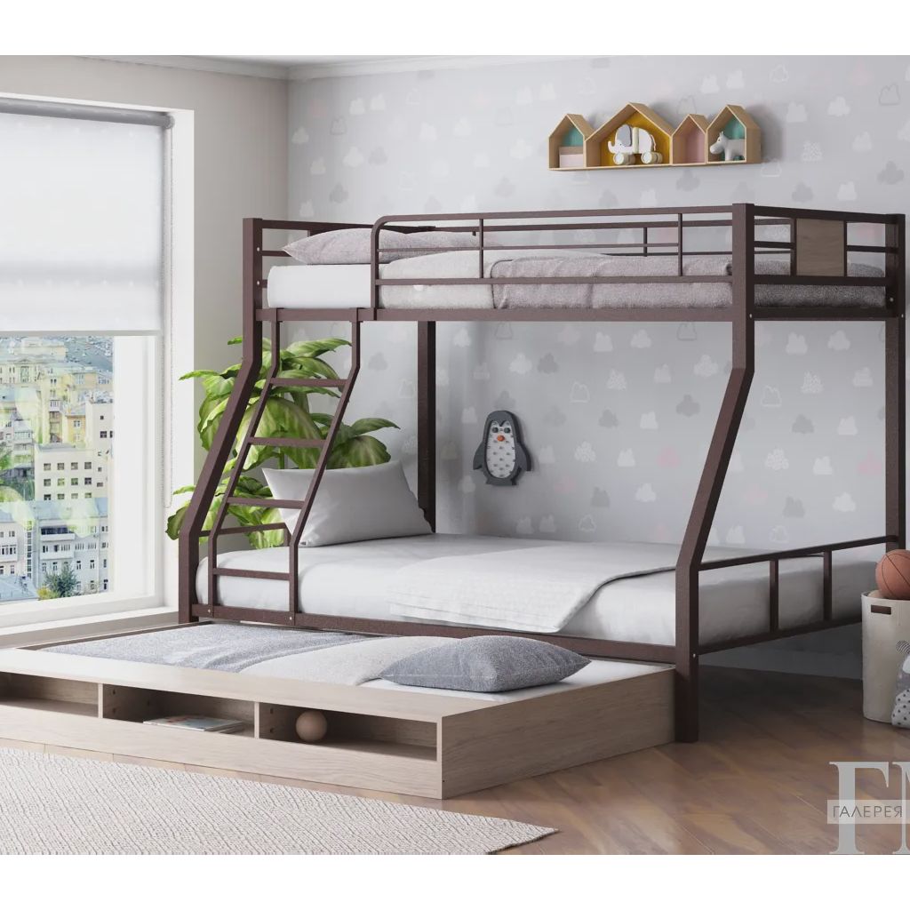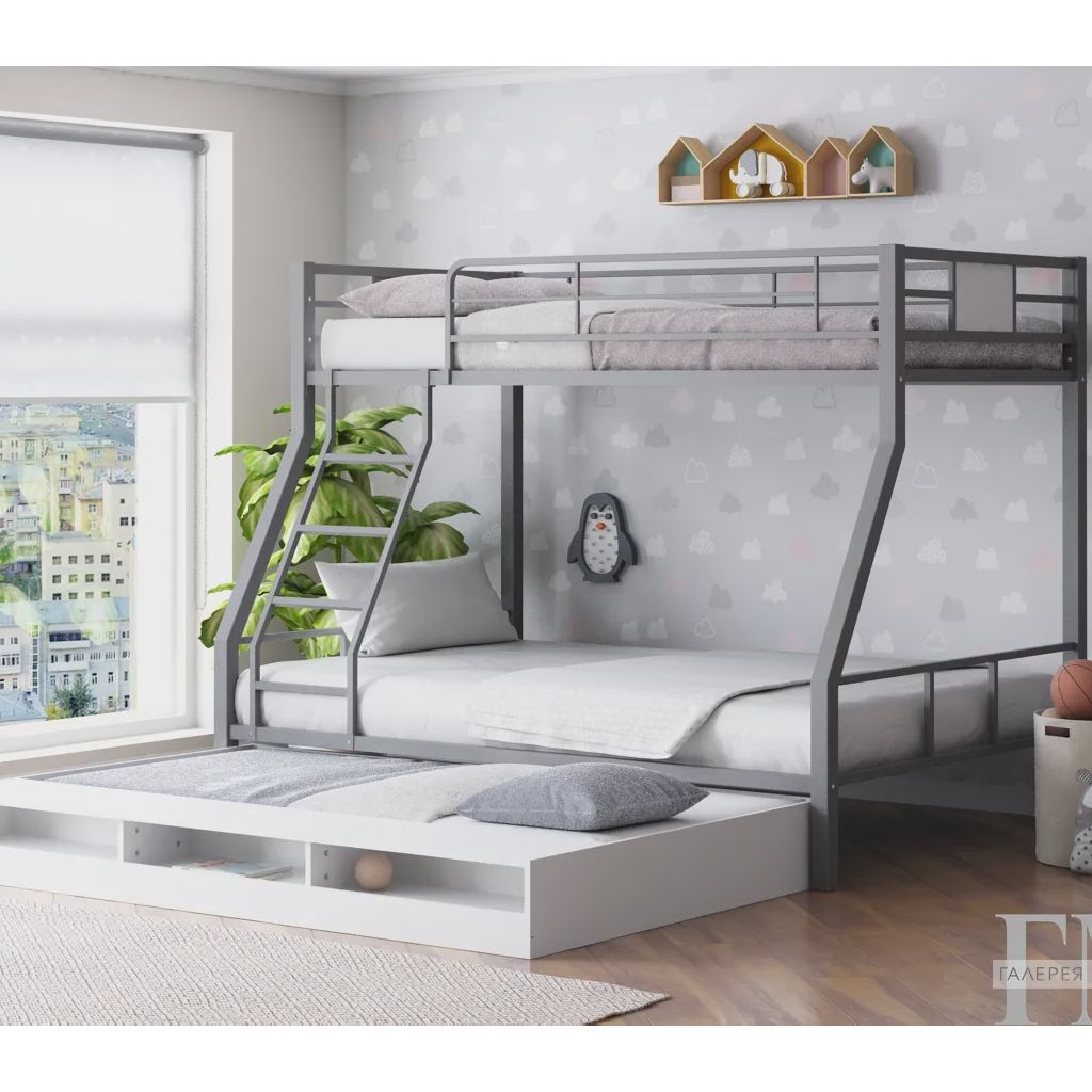 - Удобство: выдвижной механизм нижнего яруса позволяет легко превратить кровать в трехместную при необходимости.