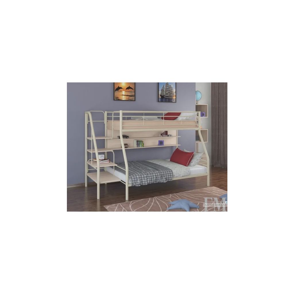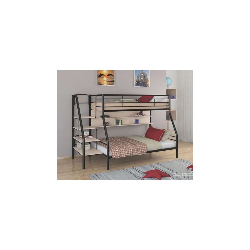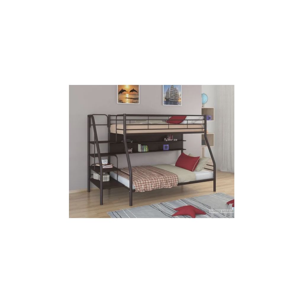 - Экономия места: двухъярусная конструкция с полками позволяет оптимально использовать пространство в комнате.
