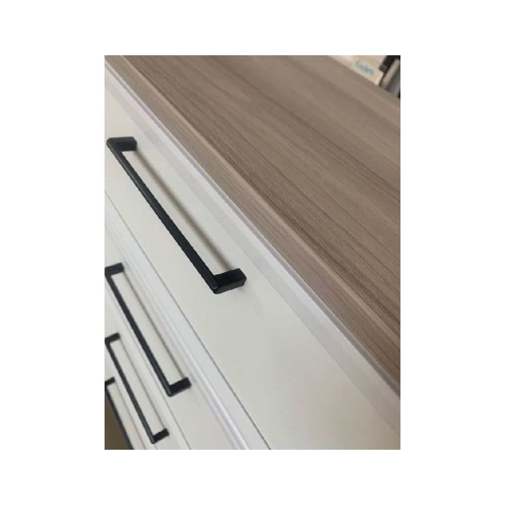 - Чёрные металлические ручки создают стильный контраст на белом фоне и подчёркивают современный характер модели.