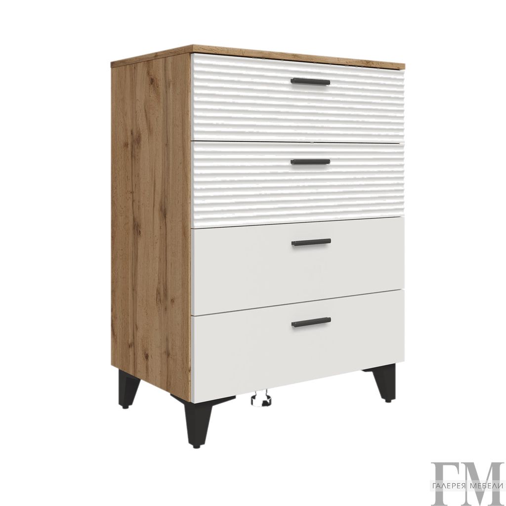 - Стильный дизайн: рельефные фасады и контрастные элементы делают комод не только функциональным, но и декоративной частью интерьера.