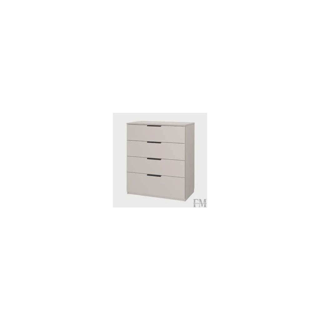- Выдвижные ящики: комод состоит из четырех глубоких ящиков, которые позволяют рационально организовать хранение одежды, белья, аксессуаров и других предметов.