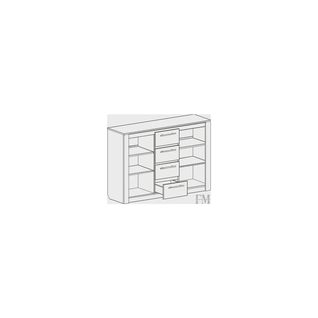 - Четыре ящика по центру: в центральной части комода находятся четыре вместительных ящика различной высоты, обеспечивающие удобное хранение одежды, белья или других мелких предметов.