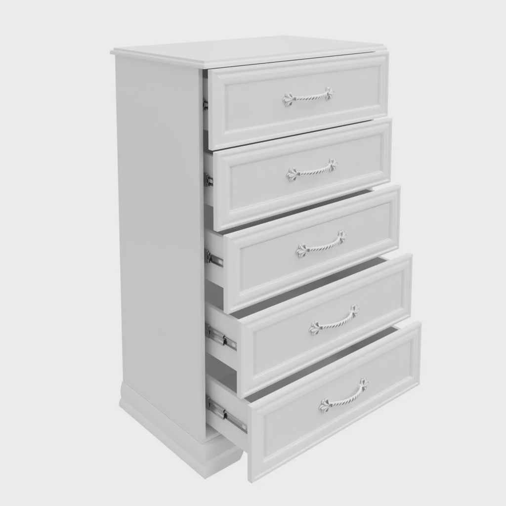 - Пять вместительных ящиков: удобные и глубокие ящики позволяют эффективно организовать хранение одежды, белья, аксессуаров или других мелочей. Плавные направляющие обеспечивают легкость открывания и закрывания.