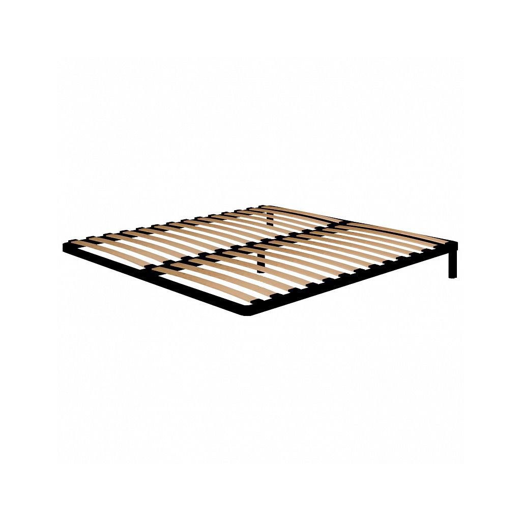 - Стационарное ортопедическое основание с гибкими ламелями из фанеры, установленными на прочном металлическом каркасе, обеспечивает правильную поддержку позвоночника и продлевает срок службы матраса.