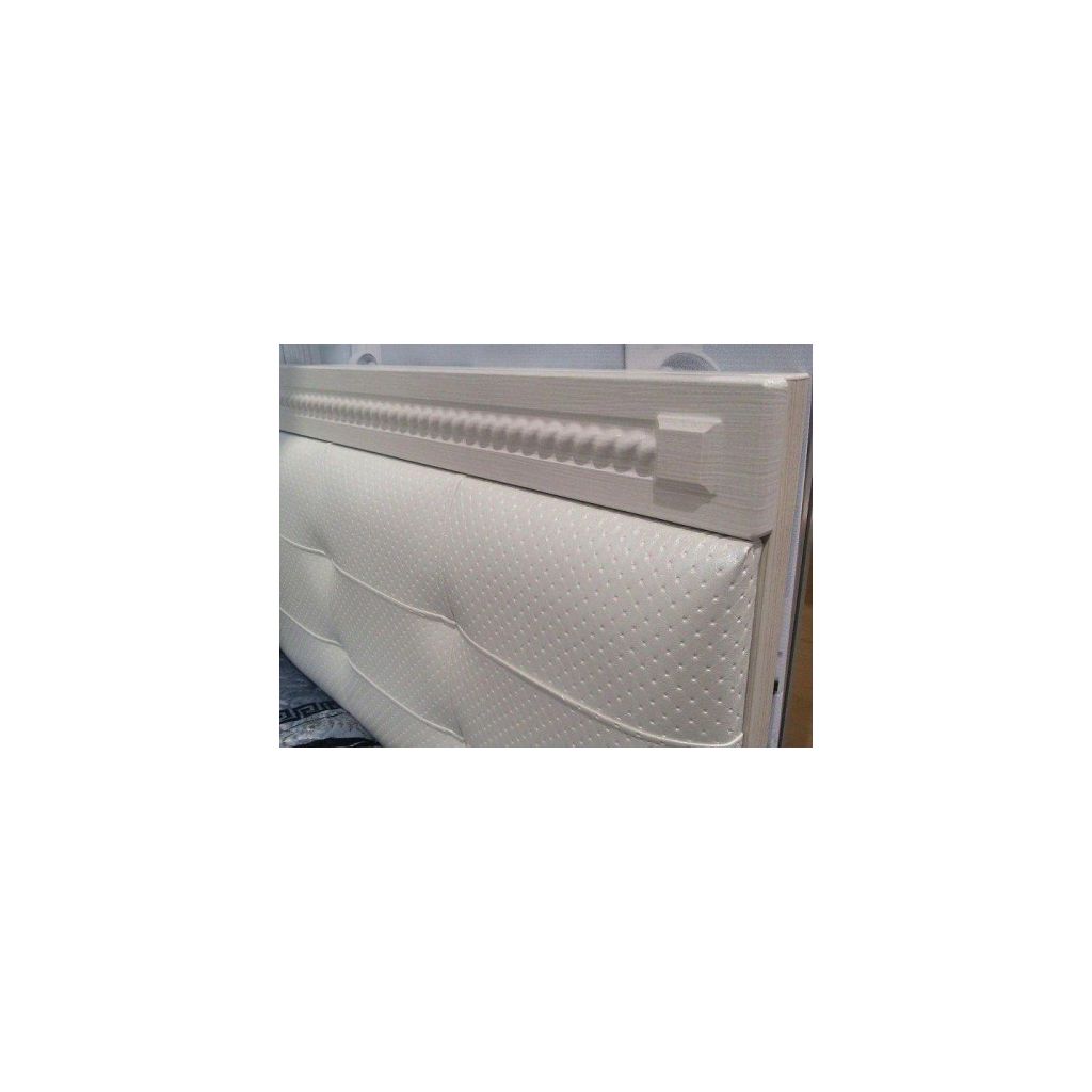 - Мягкий элемент: изголовье обтянуто высококачественной экокожей белого цвета, которая обеспечивает долговечность и легкость ухода.