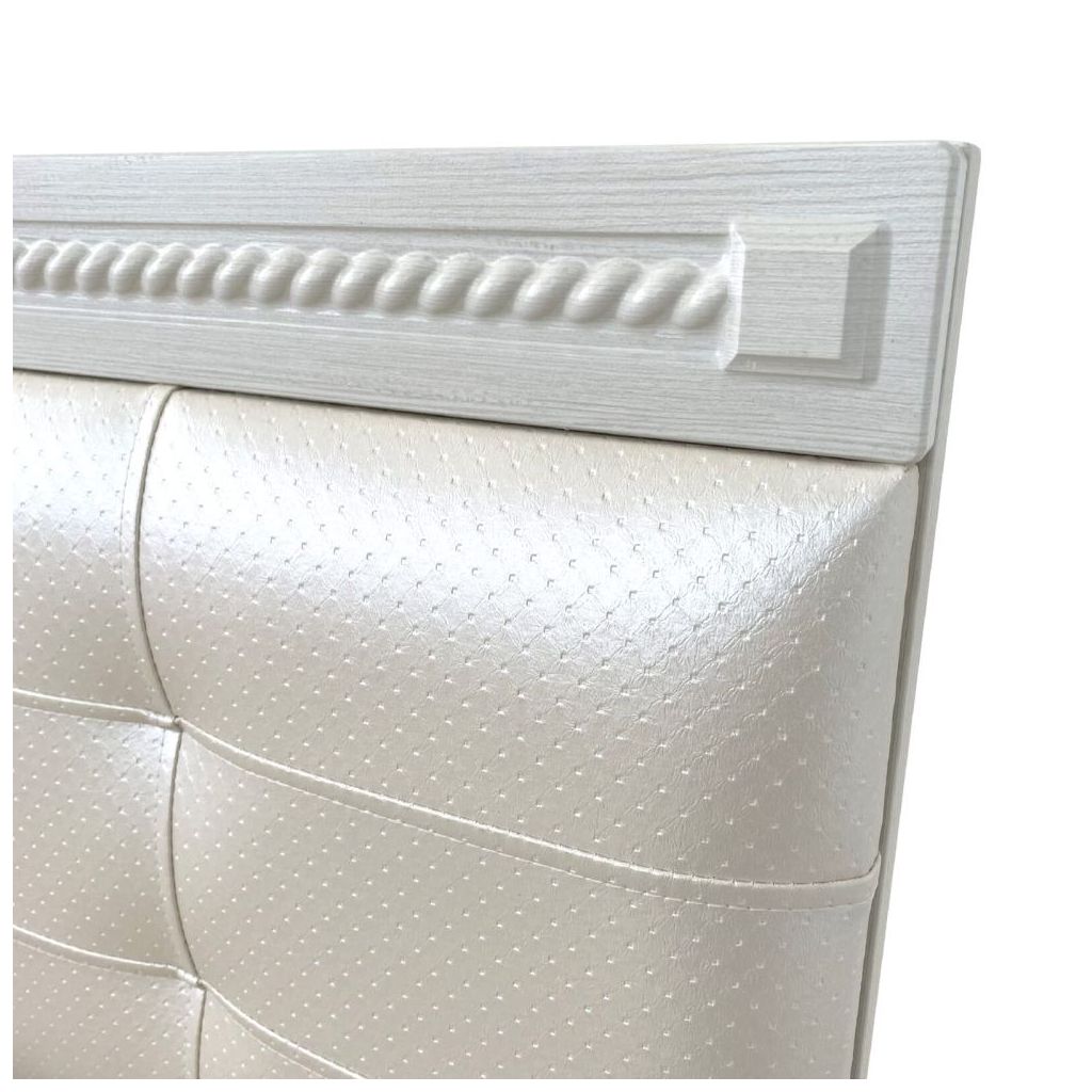- Мягкий элемент: изголовье обтянуто высококачественной экокожей, которая обеспечивает долговечность, практичность и легкость в уходе.