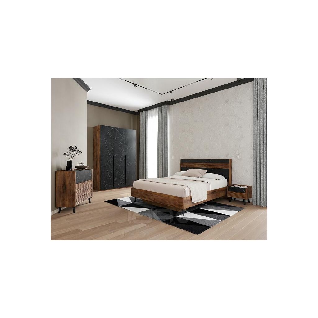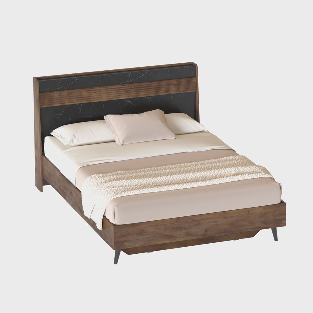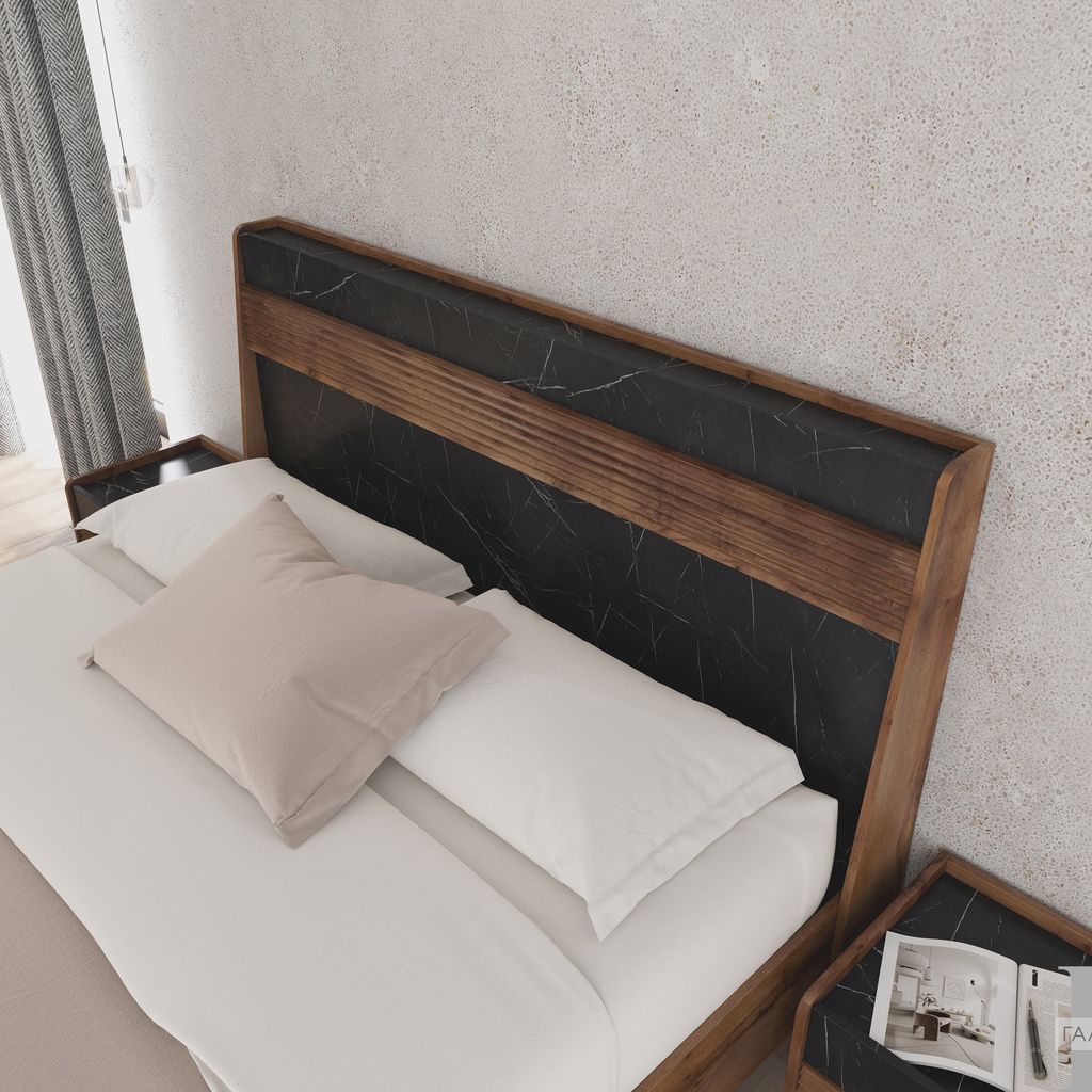 - Каркас кровати выполнен в теплом оттенке "Таксония", который гармонично сочетается с черными акцентами мрамора. Это создает баланс между уютом и современностью, делая кровать универсальной для классических и современных интерьеров.