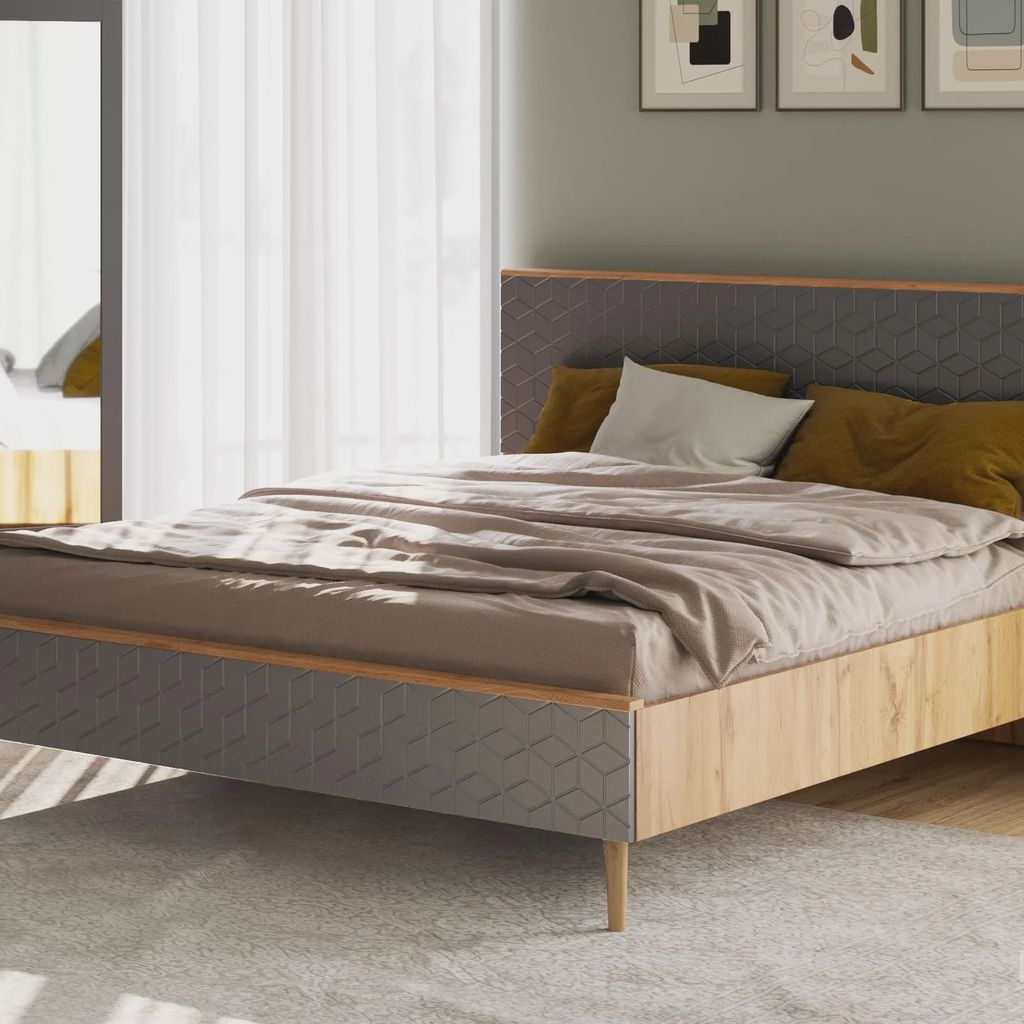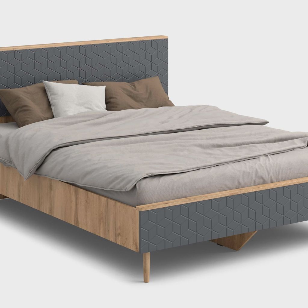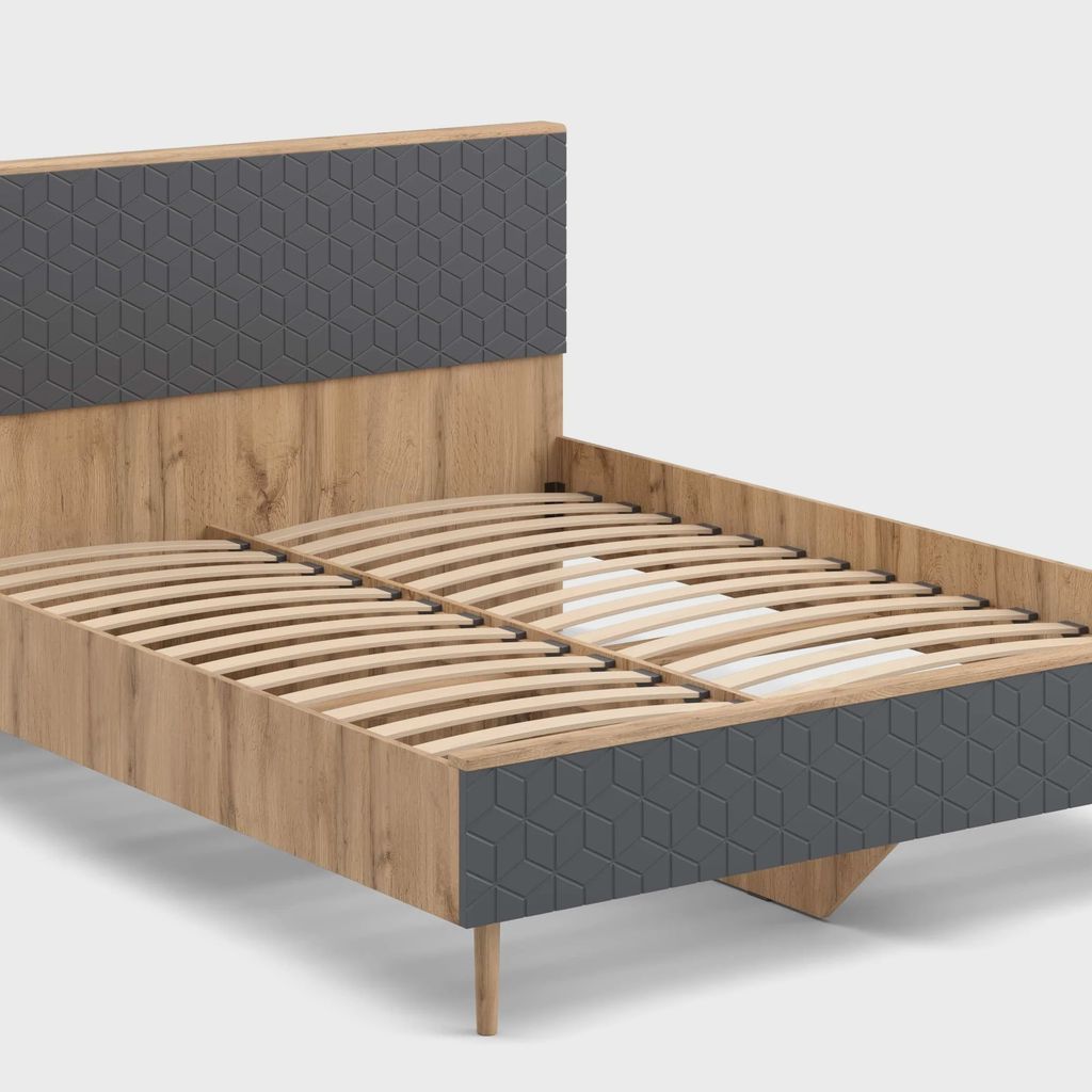 - Цветовое решение: кровать представлена в благородном сочетании "Дуб вотан-Графит", которое создает атмосферу стиля, тепла и спокойствия, идеально дополняя современный интерьер.