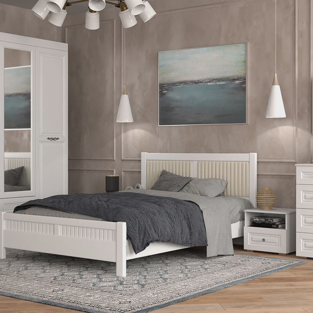 - Кровать выполнена в цветовой комбинации "Персидский жемчуг" и "Лак Льняной", которая создает атмосферу тепла и уюта, легко вписываясь в любой интерьер.