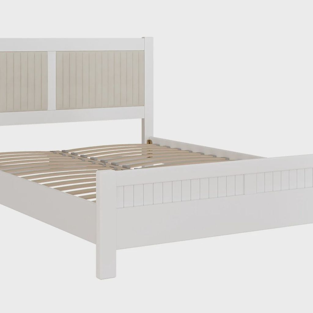 - Вертикальные линии отстрочки на мягкой вставке изголовья гармонируют с повторяющей их фрезеровкой на изножье кровати. Такое сочетание придает модели изысканный вид и подчеркивает её современный дизайн.