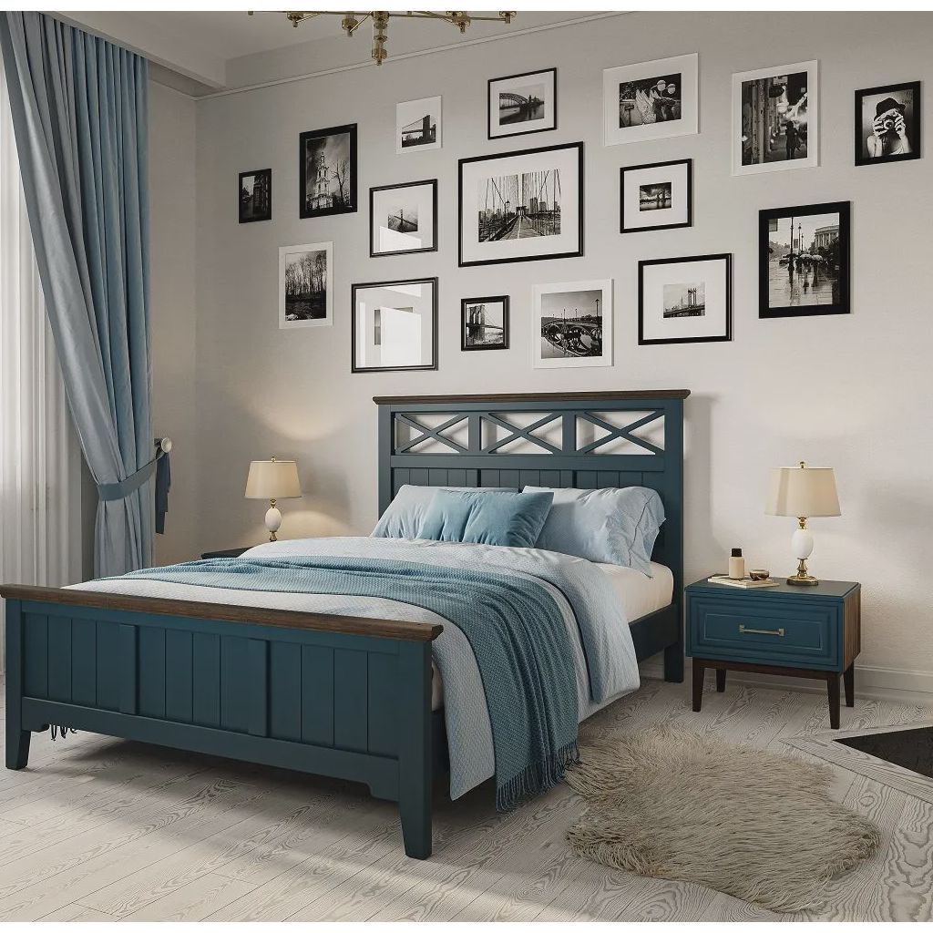 - Уникальный дизайн: сочетание цвета Сапфир и карнизов Дуб коньяк делает кровать настоящим украшением спальни.