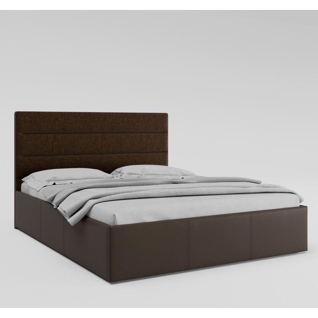 Особенность данной кровати в комбинировании материалов. Изголовье кровати изготавливается из ткани, а каркас обит экокожей.