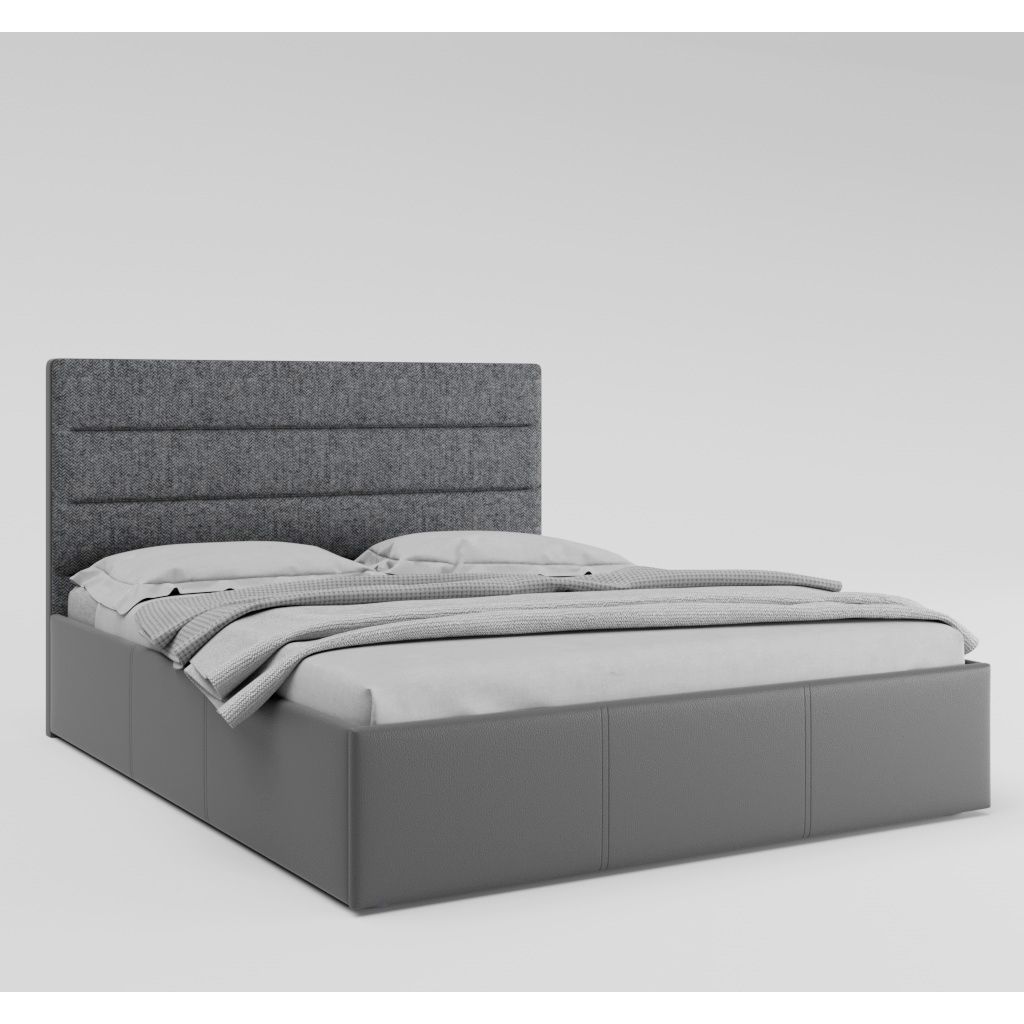 Особенность данной кровати в комбинировании материалов. Изголовье кровати изготавливается из ткани, а каркас обит экокожей.