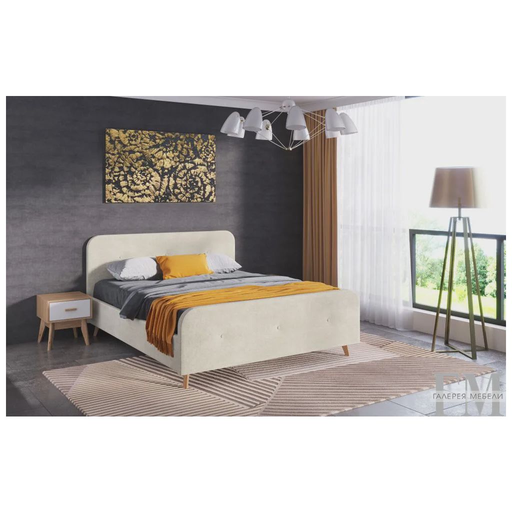 - Элегантный дизайн: бежевый велюр и массивные деревянные опоры создают безупречный внешний вид, благодаря которому кровать становится центральным элементом спальни.