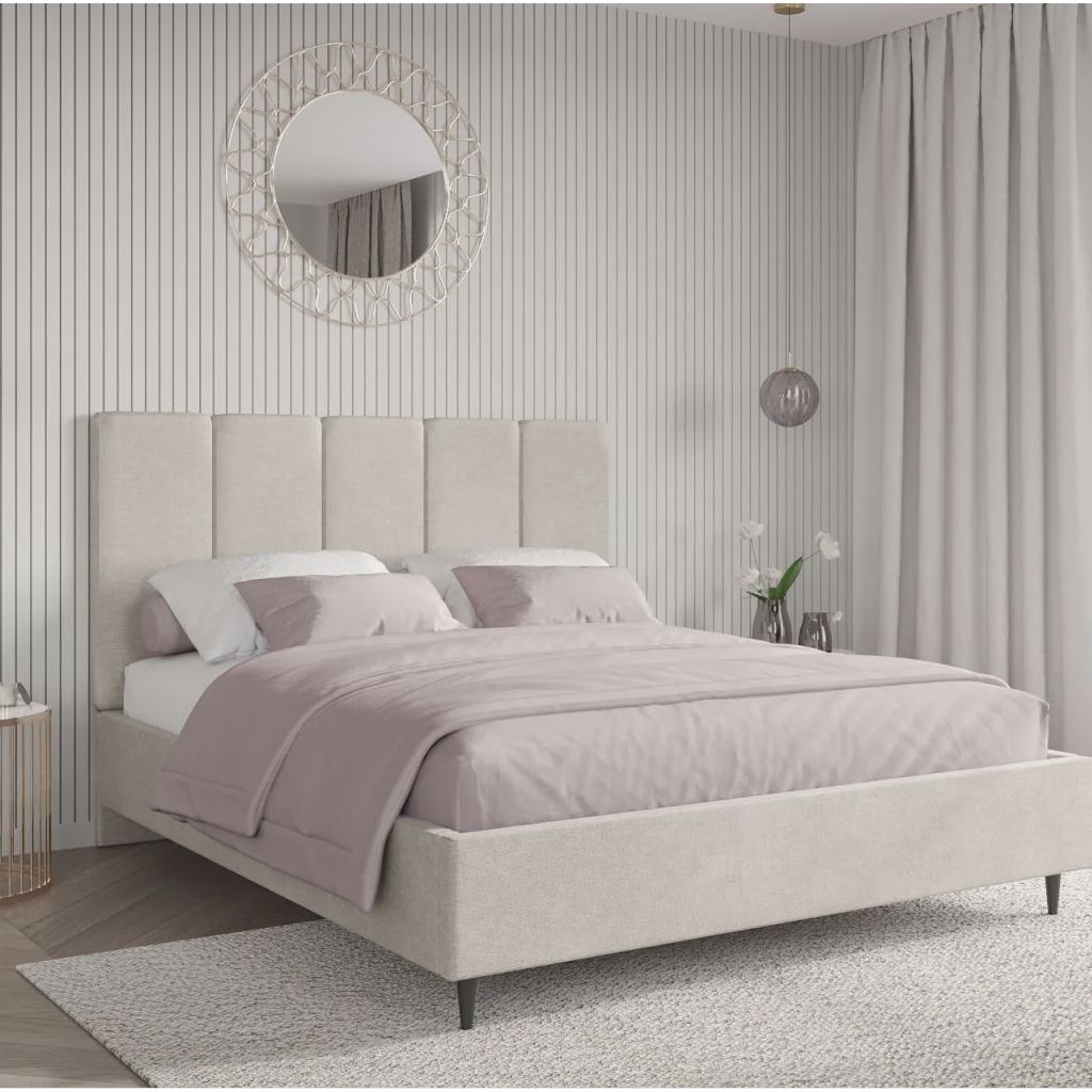 - Стильный внешний вид: декоративные полоски и велюровая обивка придают кровати современный и изысканный вид.