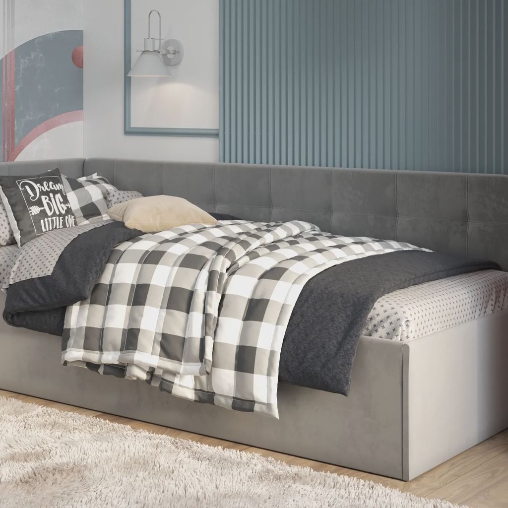- Универсальность: серый цвет и лаконичный дизайн делают кровать подходящей для любого интерьера, будь то классика или современный минимализм.