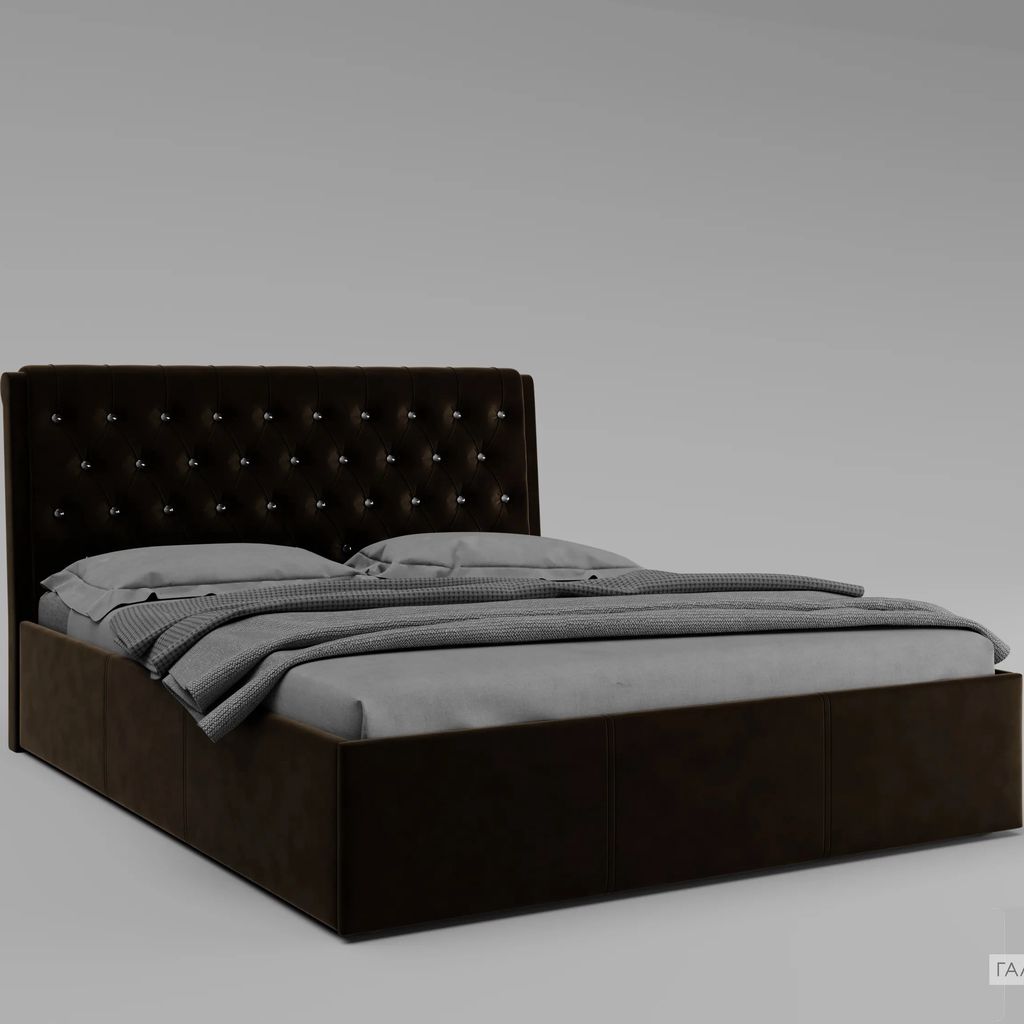 - Высокое изголовье: создано с применением техники каретной стяжки. Декоративные стразы добавляют элемент роскоши.