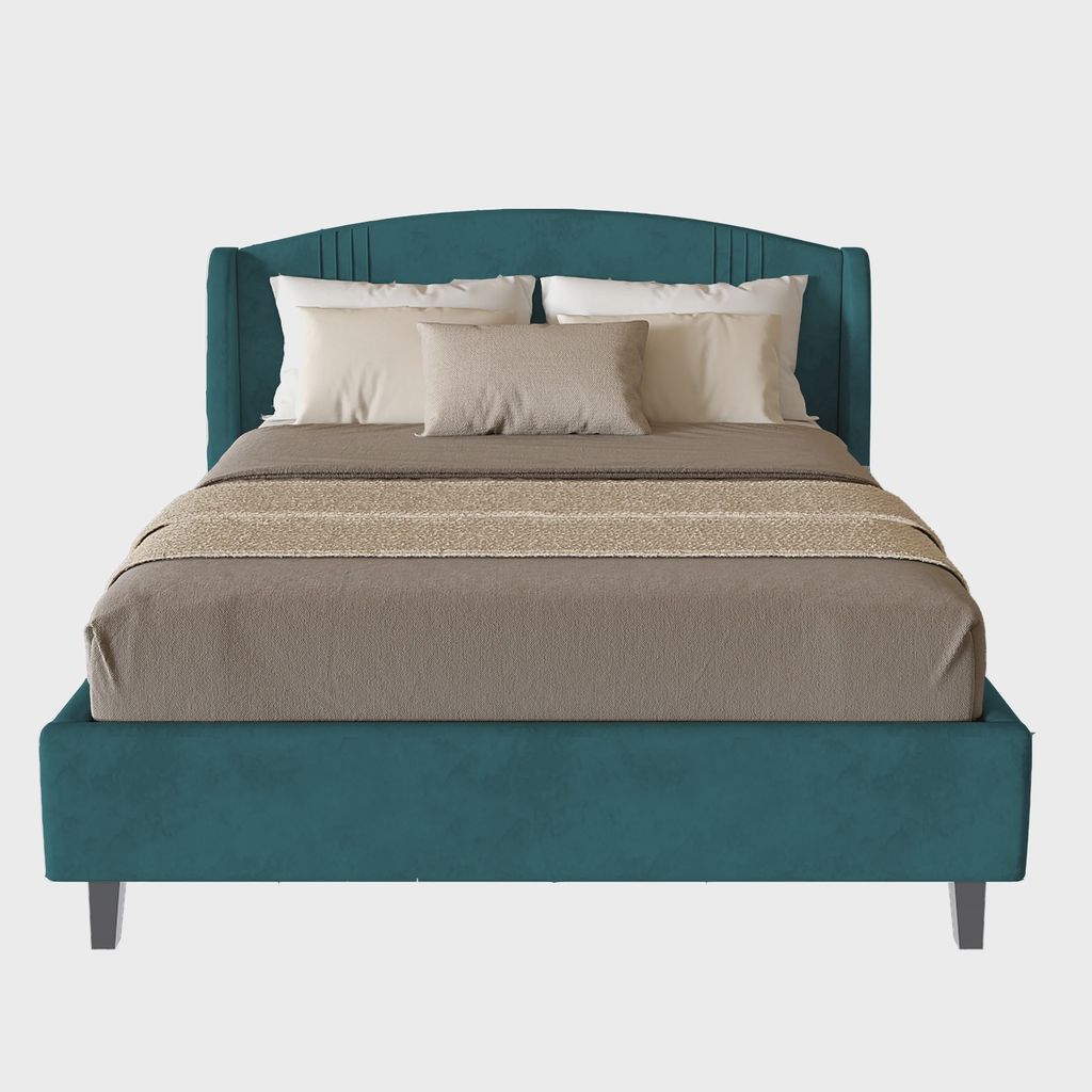- Каркас кровати обит мягким и приятным на ощупь велюром, который обеспечивает комфорт и долговечность.
