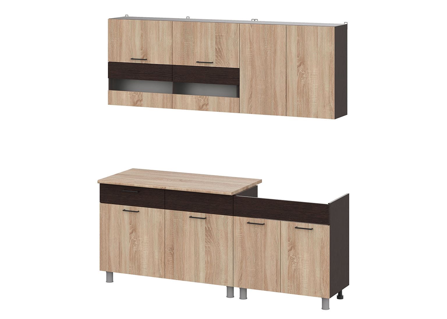- Фасады: на выбор — «Дуб Сонома» (тёплый светлый) или «Дуб Венге» (монохромный вариант).