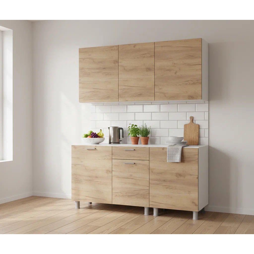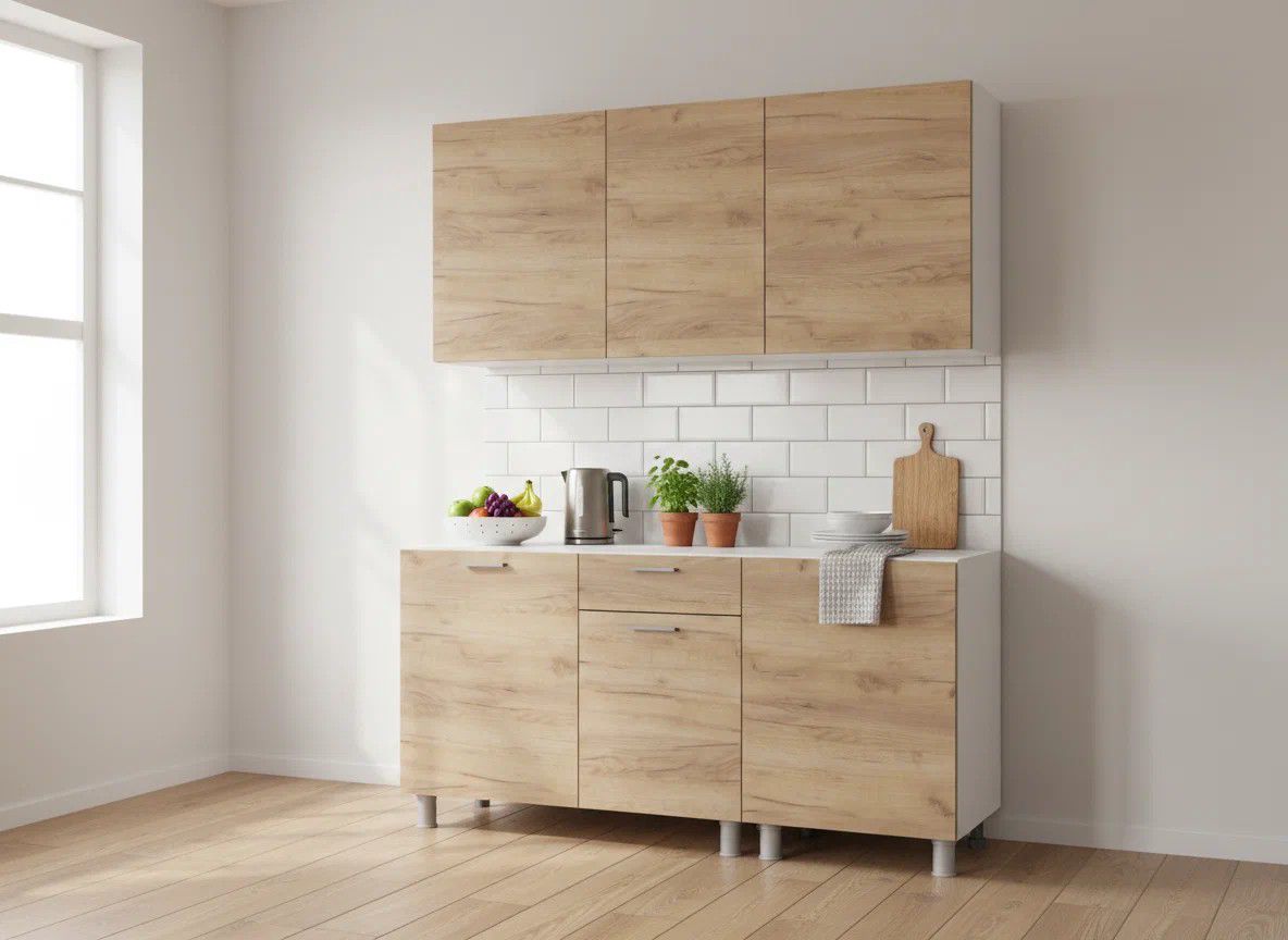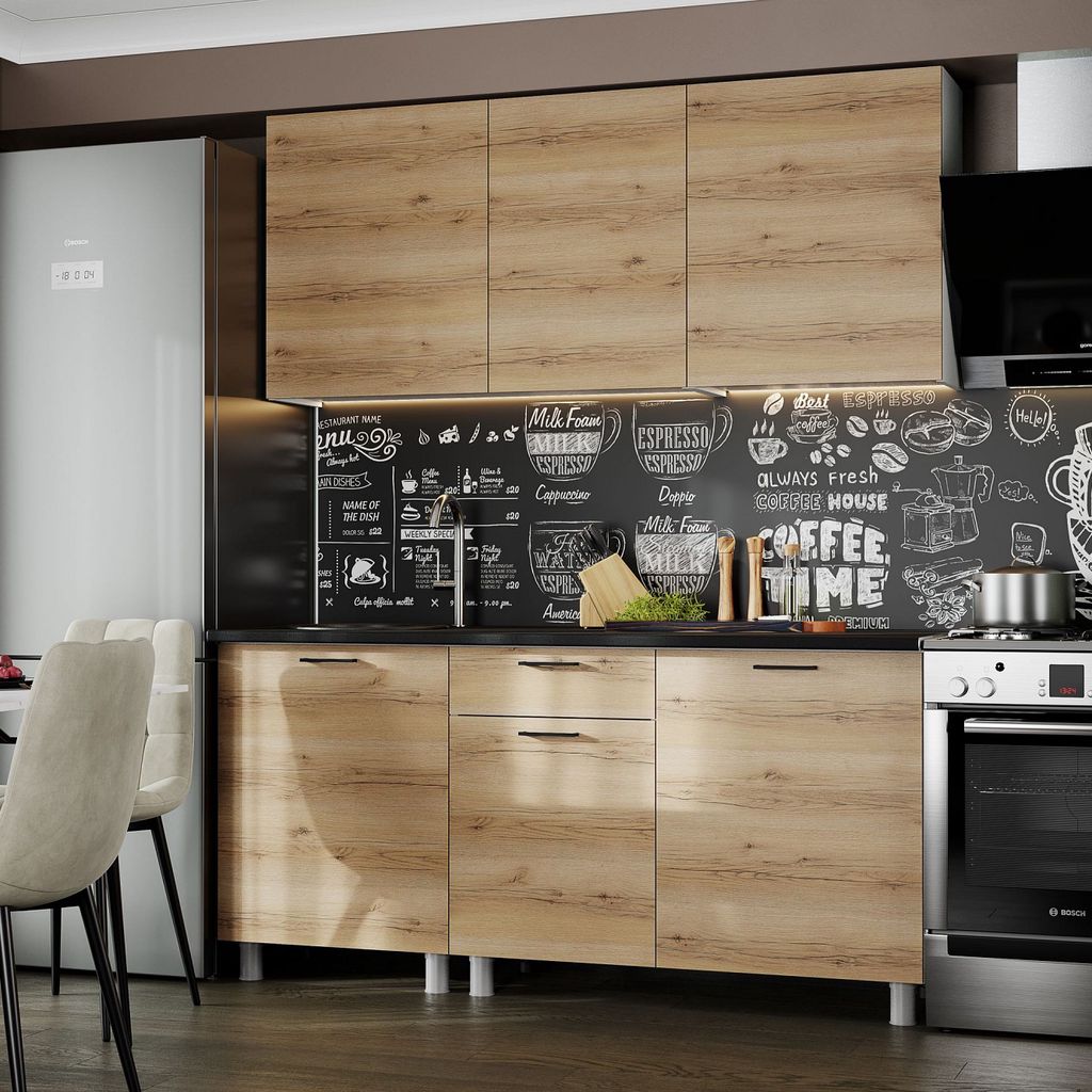 Кухонный гарнитур «Лаванда» — это готовое решение для компактной кухни шириной 1,7 метра, которое позволяет создать уютную и функциональную рабочую зону без лишних затрат. Тёплый оттенок «Дуб Золотой» придаёт интерьеру натуральности и тепла, а модульная конструкция даёт гибкость в планировке. Гарнитур поставляется без столешницы — вы можете выбрать материал и дизайн поверхности отдельно, под свои предпочтения и бюджет.
