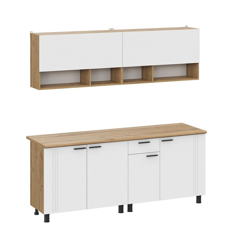 Кухонный гарнитур «Монако» — это идеальное решение для тех, кто ценит функциональность, стиль и доступное качество. Сочетание тёплого оттенка «Дуб Золотой» и белых фасадов создаёт светлый, изысканный интерьер, который визуально расширяет пространство и наполняет кухню уютом. Продуманная модульная система обеспечивает максимальный комфорт при готовке, а возможность трансформации шкафов позволяет адаптировать гарнитур под вашу планировку.