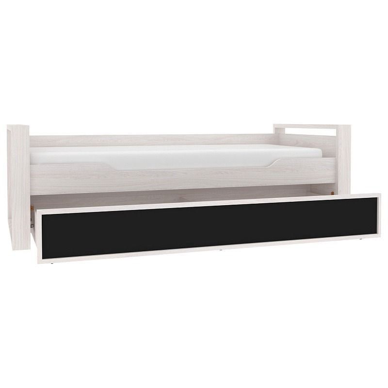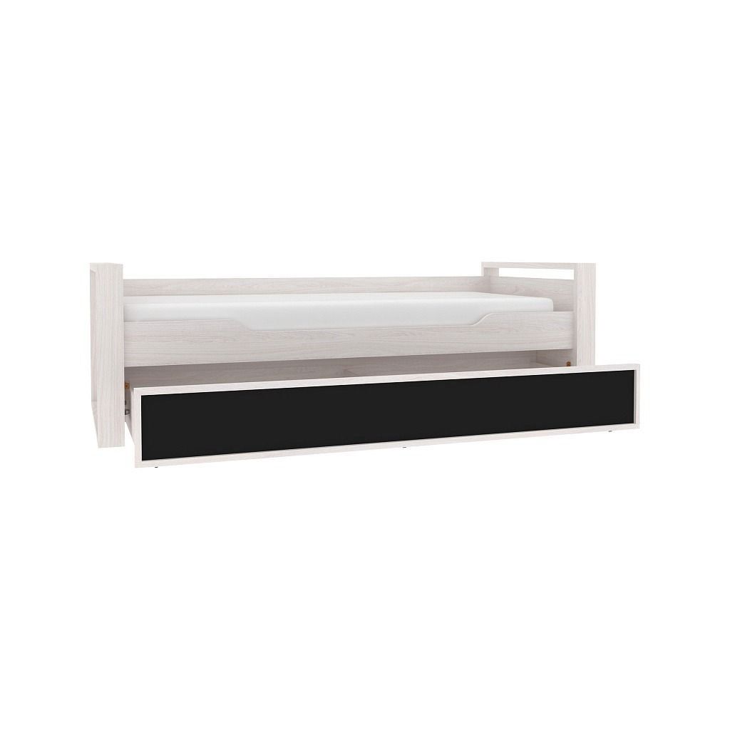 - Большой вместительный ящик на выкатных роликах легко выдвигается и может использоваться как место для хранения постельного белья, игрушек или сезонной одежды. При необходимости его можно задействовать как дополнительное спальное место - идеально для ночёвок друзей.