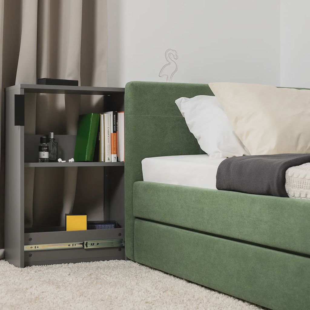 - Эстетика: обтяжка тканью в цвете EPIC MOSS делает кровать стильной и современной.
