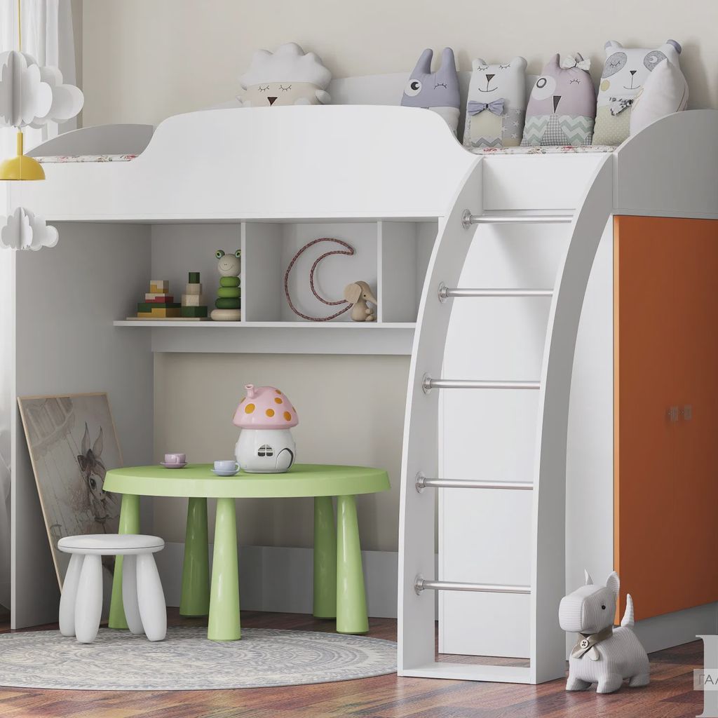Кровать-чердак "Соня-1" - это функциональное и компактное решение для детской комнаты, сочетающее в себе место для сна, хранения вещей и дополнительные возможности для организации пространства.
