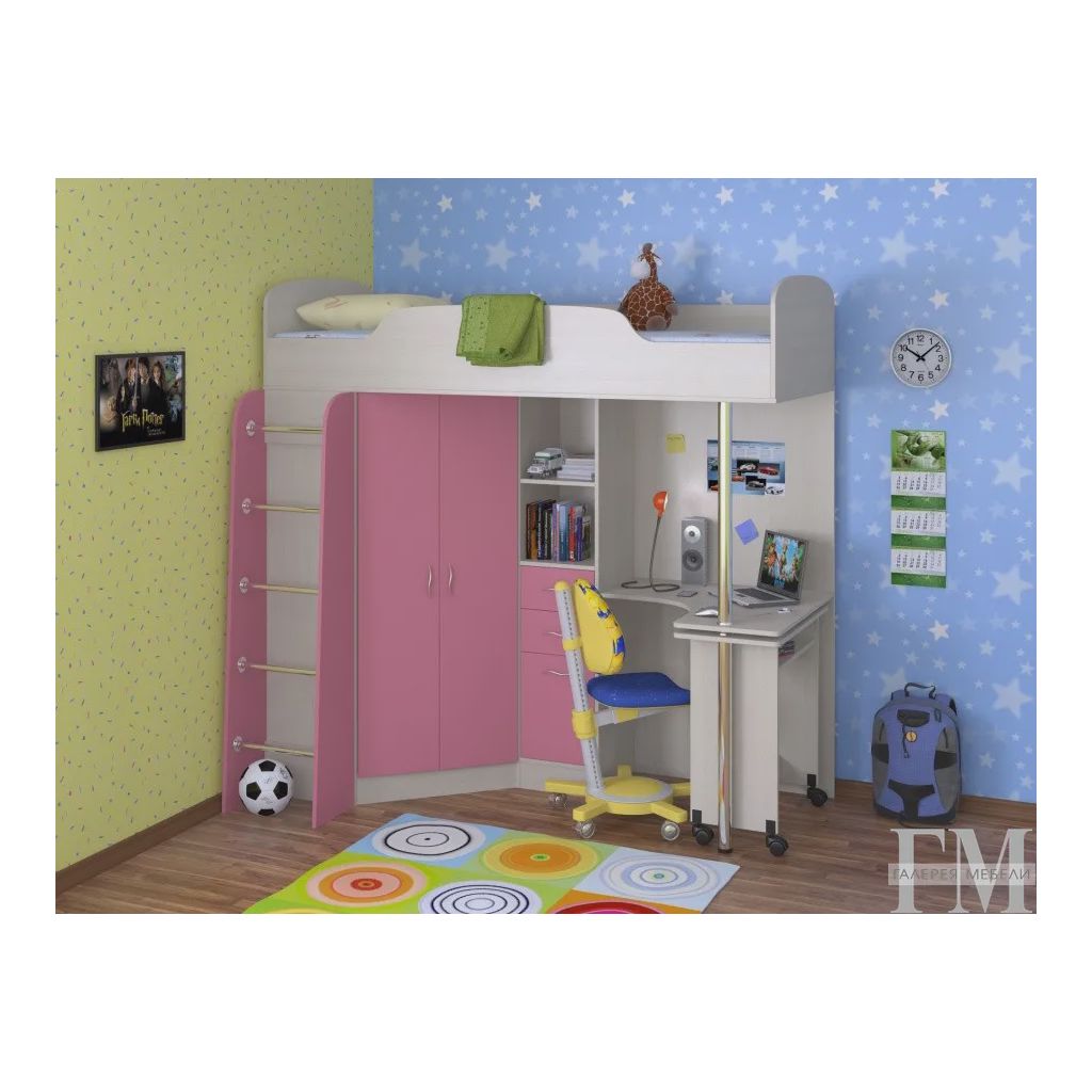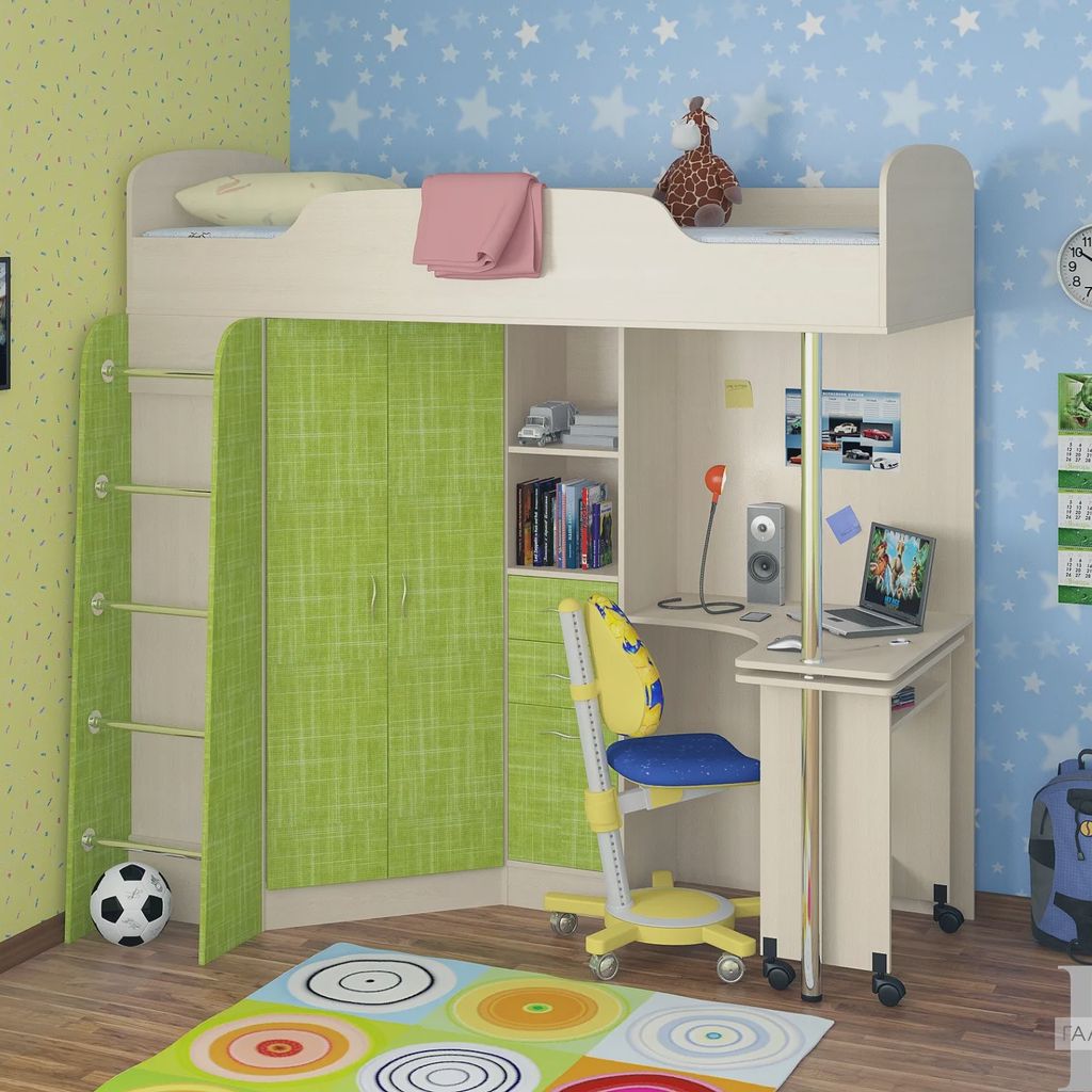 Кровать-чердак "Теремок 1" - это функциональное и компактное решение для детской комнаты, объединяющее в себе место для сна, хранения вещей, учебную зону и другие важные элементы. Модель создана для рационального использования пространства, обеспечивая комфорт, практичность и стиль.