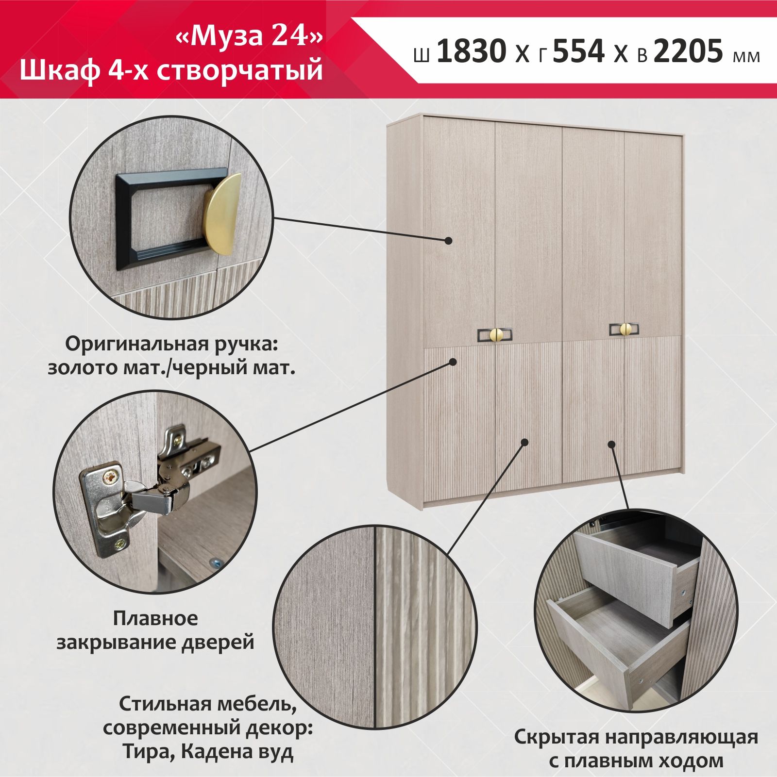 Четырехстворчатый шкаф «Муза 24»