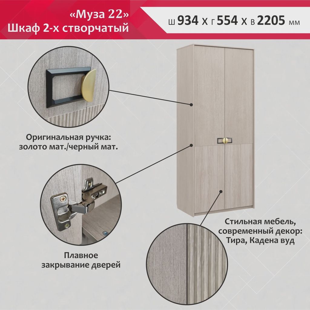 Шкаф «Муза» — лаконичный дизайн и премиальные акценты.