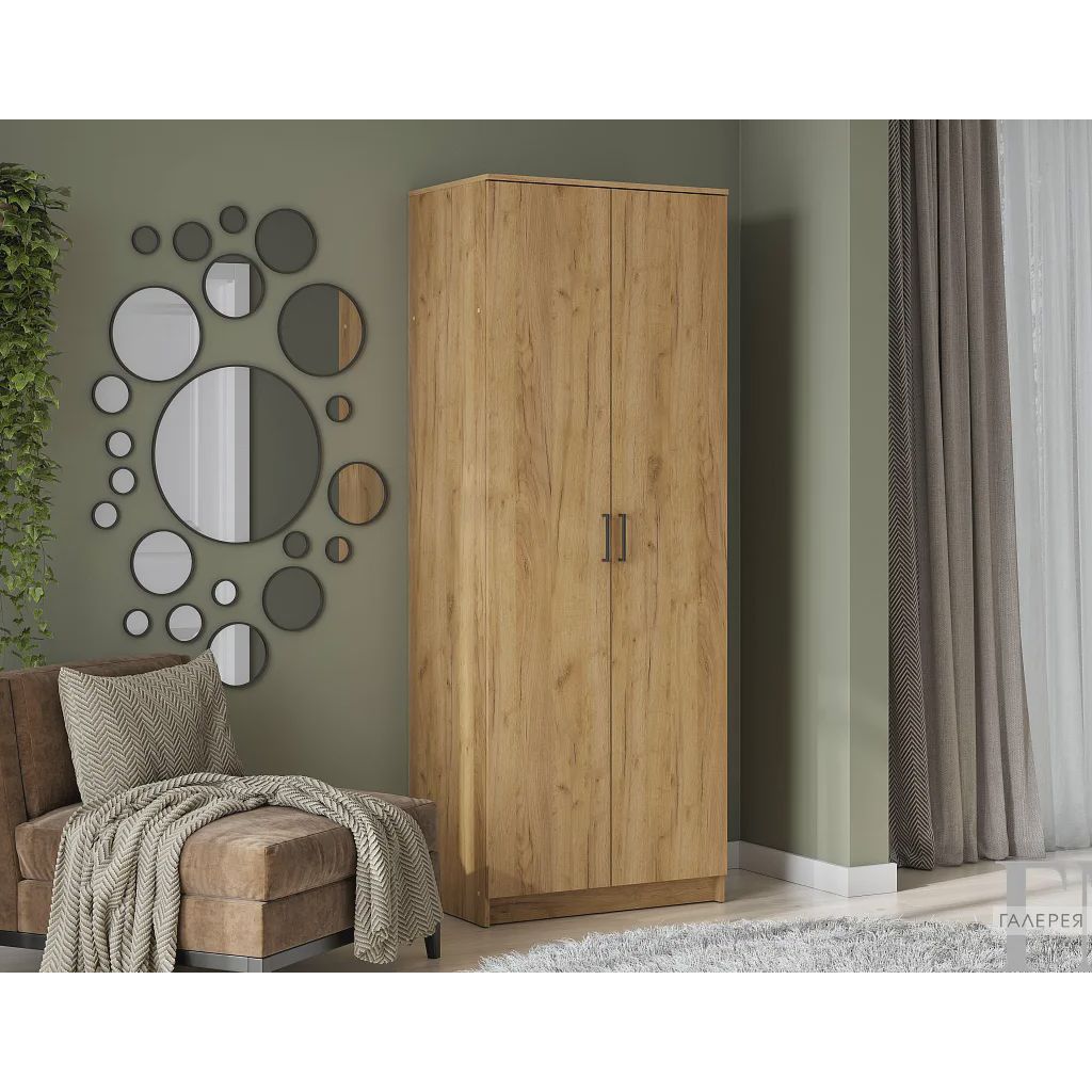 Шкаф «ШК-2» в цвете «Дуб золотой» станет универсальным решением для спальни, прихожей или гардеробной. Его сдержанная древесная текстура с тёплым золотистым оттенком добавит интерьеру уюта, тепла и естественной эстетики.