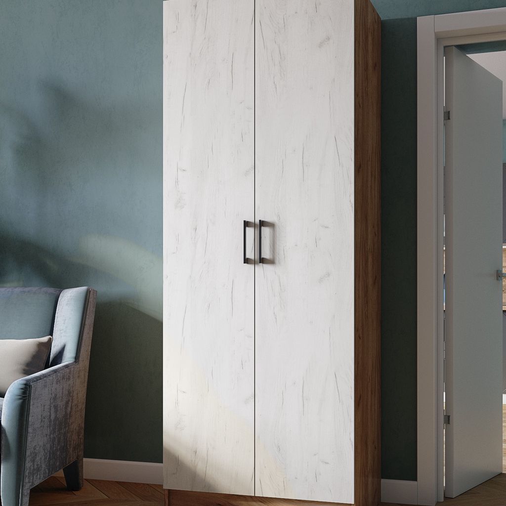 Шкаф «Вегас 800» — идеальный выбор для тех, кто ценит стиль, порядок и рациональное использование пространства. «Дуб крафтовый табачный» оттенок в сочетании с «Дуб крафтовый белый» создают атмосферу уютной роскоши и сдержанного стиля.