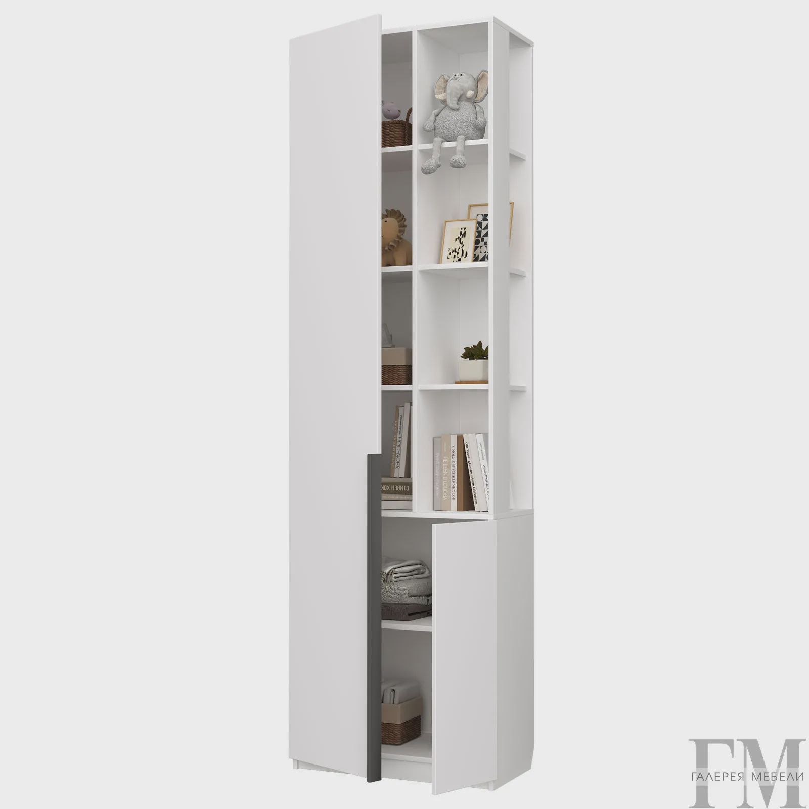 Пенал «Чарли 5.2» — стильное сочетание открытых и закрытых секций для рационального использования пространства в вашем доме. Белый цвет создаёт ощущение лёгкости и гармонично вписывается в любой интерьер.