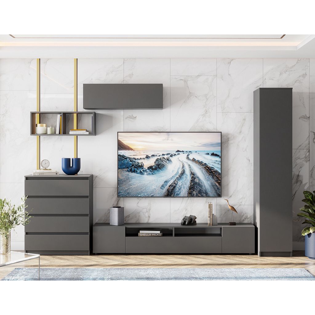 - Сдержанная графитовая эстетика – глубокий серый оттенок добавляет интерьеру статуса и современности. Нейтральный тон легко комбинируется с любыми палитрами, текстилем и отделочными материалами, а практичная поверхность скрывает мелкие загрязнения.