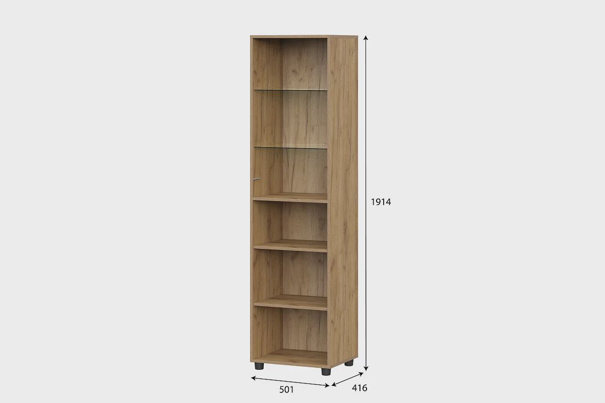 - Стеклянная витрина с безопасным стеклом – прозрачные полки и дверца создают эффект воздушности, не перегружая пространство. Стекло закалённое, с обработанными кромками — безопасно для дома с детьми.
