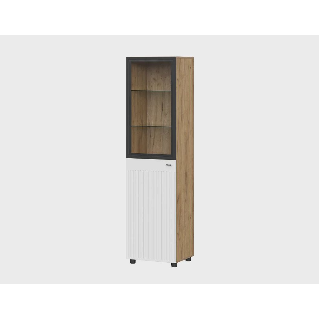 - Двухрежимное хранение – верхняя витринная зона со стеклянной дверцей и полками для демонстрации красивых вещей + нижняя закрытая секция для практичного, скрытого хранения. Всё на своих местах.