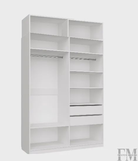 - Выбор конфигурации: возможность выбрать секцию с штангой и полками или добавить дополнительную штангу для расширения пространства под одежду на вешалках.