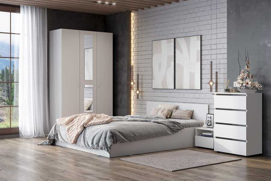 Шкаф «Токио» — это стильное решение, которое вдохновляет на лёгкость, порядок и уют. Благодаря белым матовым фасадам и изящной зеркальной вставке на центральной створке он визуально расширяет пространство, наполняет комнату светом и становится изысканным акцентом в интерьере.