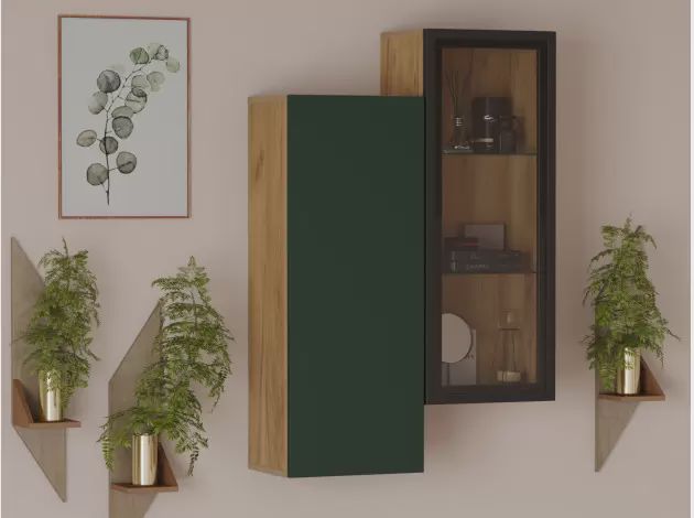 - Стеклянные полки внутри – визуально «парящие» полки подчёркивают лёгкость дизайна и позволяют эффектно демонстрировать содержимое. Регулируемая высота секций адаптирует хранение под ваши задачи.