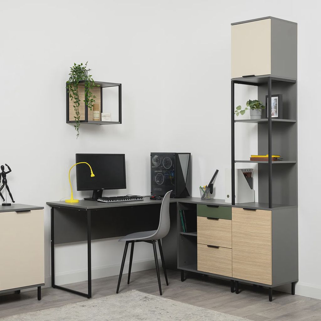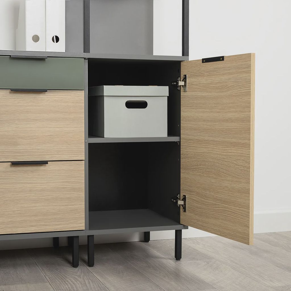 Стеллаж «Марвел» — сочетание открытого и закрытого хранения в современном дизайне. Цветовое исполнение «Плейн» и «Сатин» универсально и гармонично сочетаются с любым стилем - от скандинавского до современного лофта.
