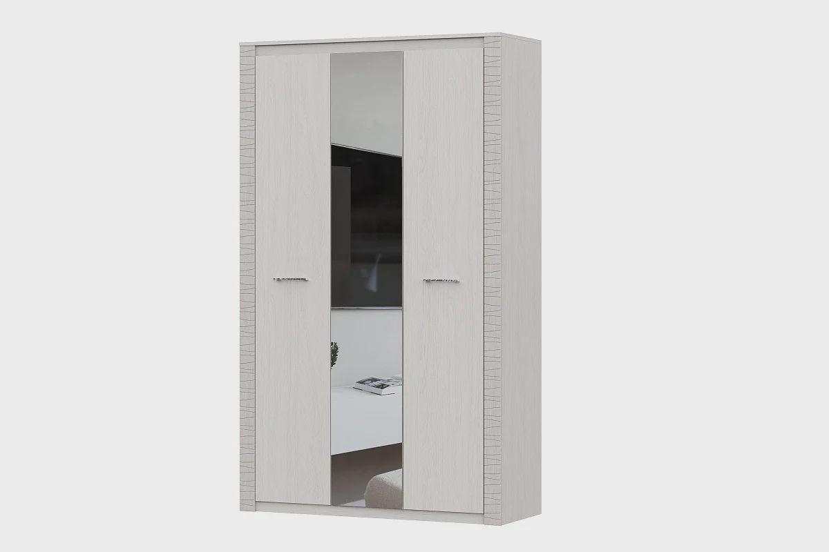 - Вместительная трёхстворчатая конструкция – оптимальная ширина для максимального хранения без визуального перегруза. Удобный доступ ко всем секциям, плавный ход дверей, эргономичное зонирование.