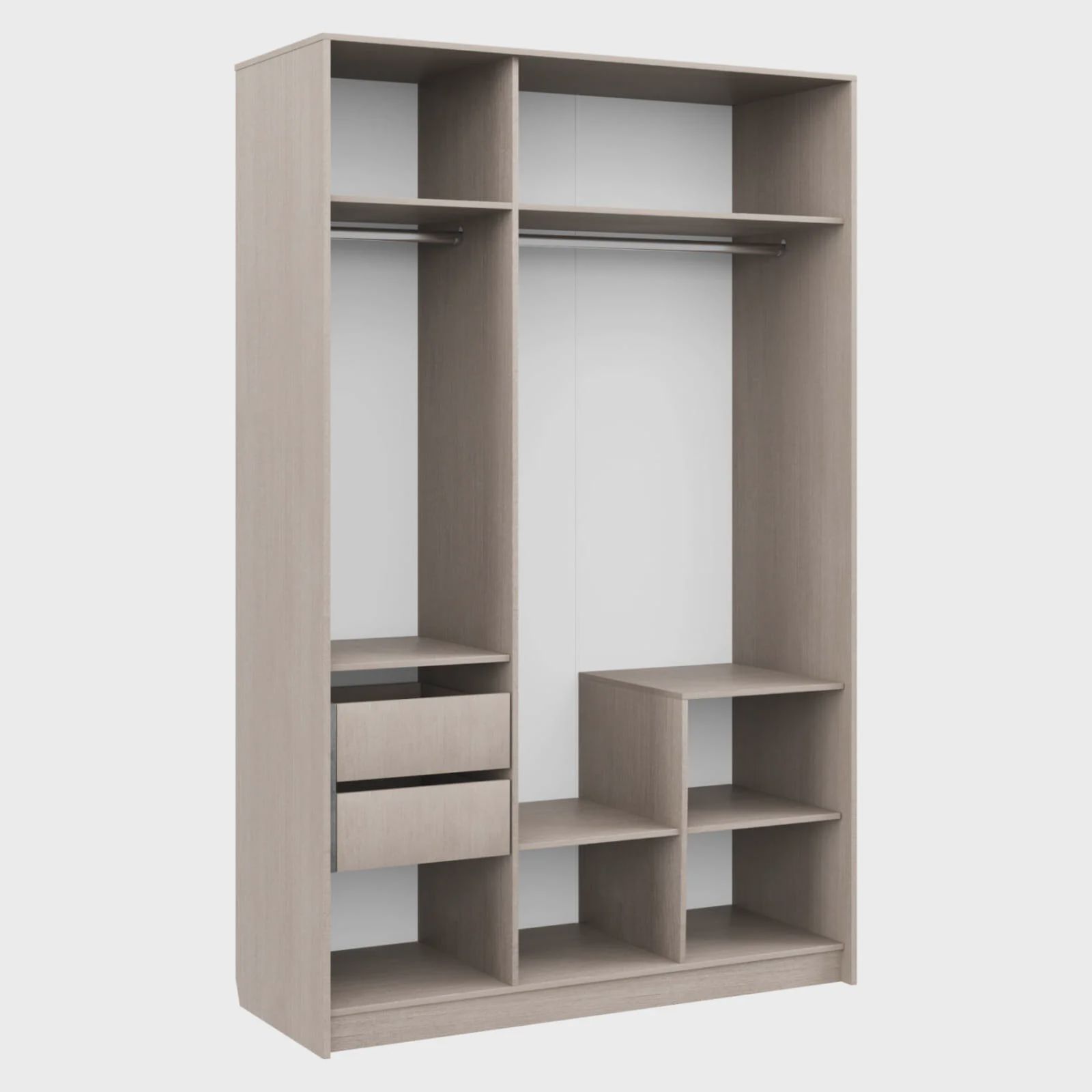 - Универсальное наполнение — вместительная штанга для одежды на плечиках и регулируемые полки позволяют гибко организовать хранение вещей любого формата.