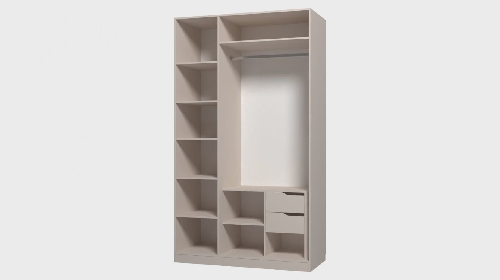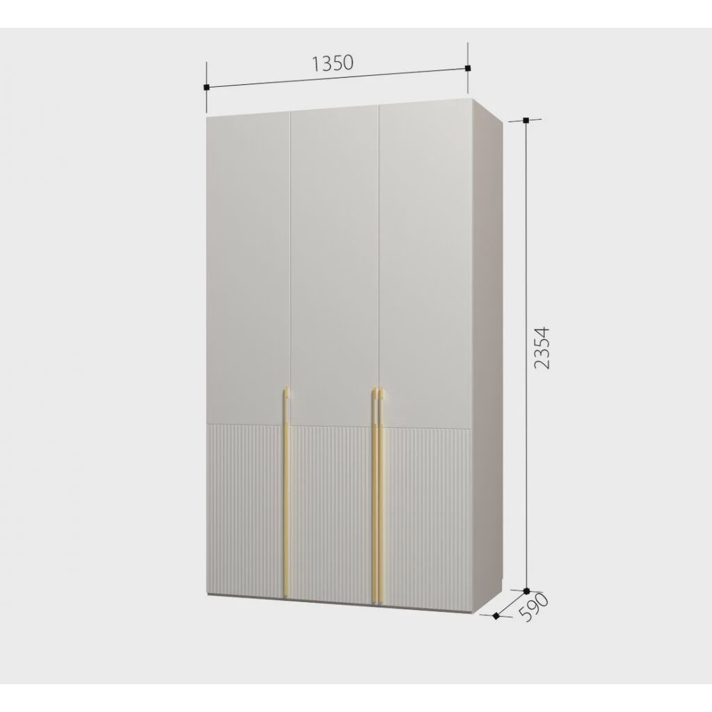 - Вместительная трёхстворчатая конструкция – оптимальная ширина для максимального хранения без визуального перегруза. Удобный доступ ко всем секциям, плавный ход дверей, эргономичное зонирование.
