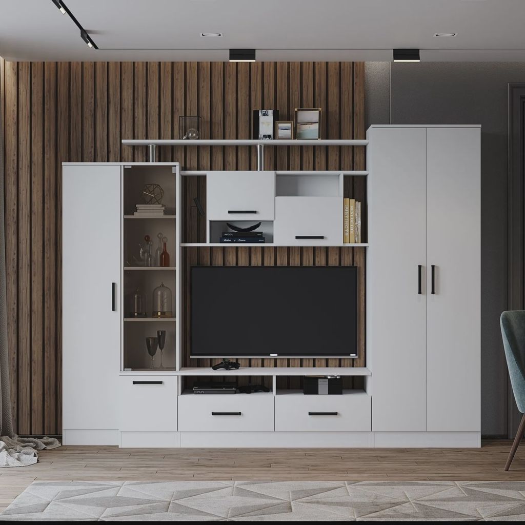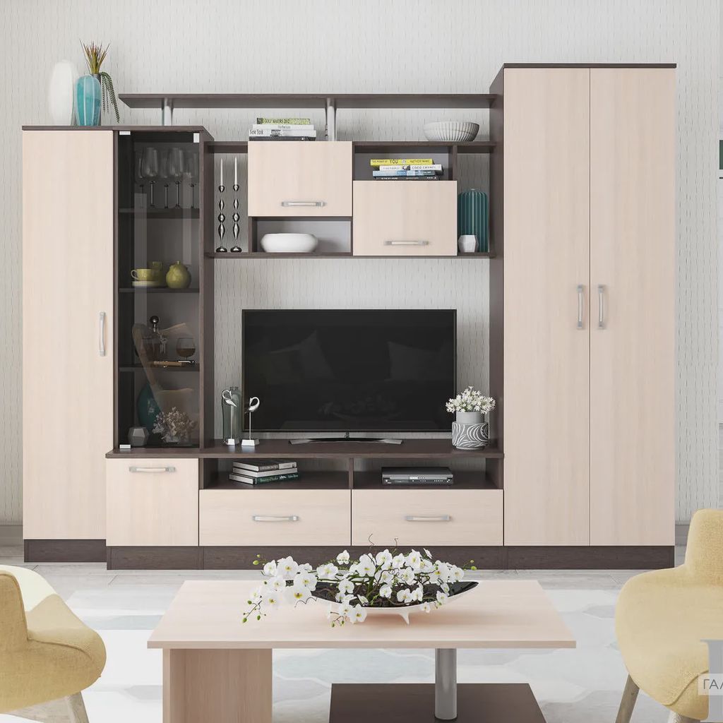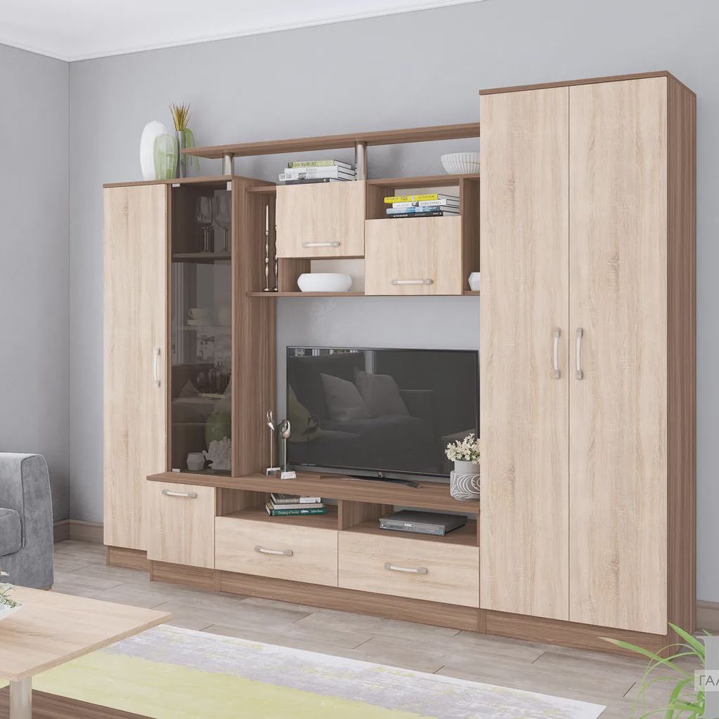 Стенка "Оскар-5" рассчитана на установку телевизоров различных размеров. Используйте закрытые секции для хранения вещей, которые нужно скрыть от глаз, а открытые полки - для демонстрации декора. Встроенные вешалки и ящики помогут организовать пространство для одежды и мелочей.