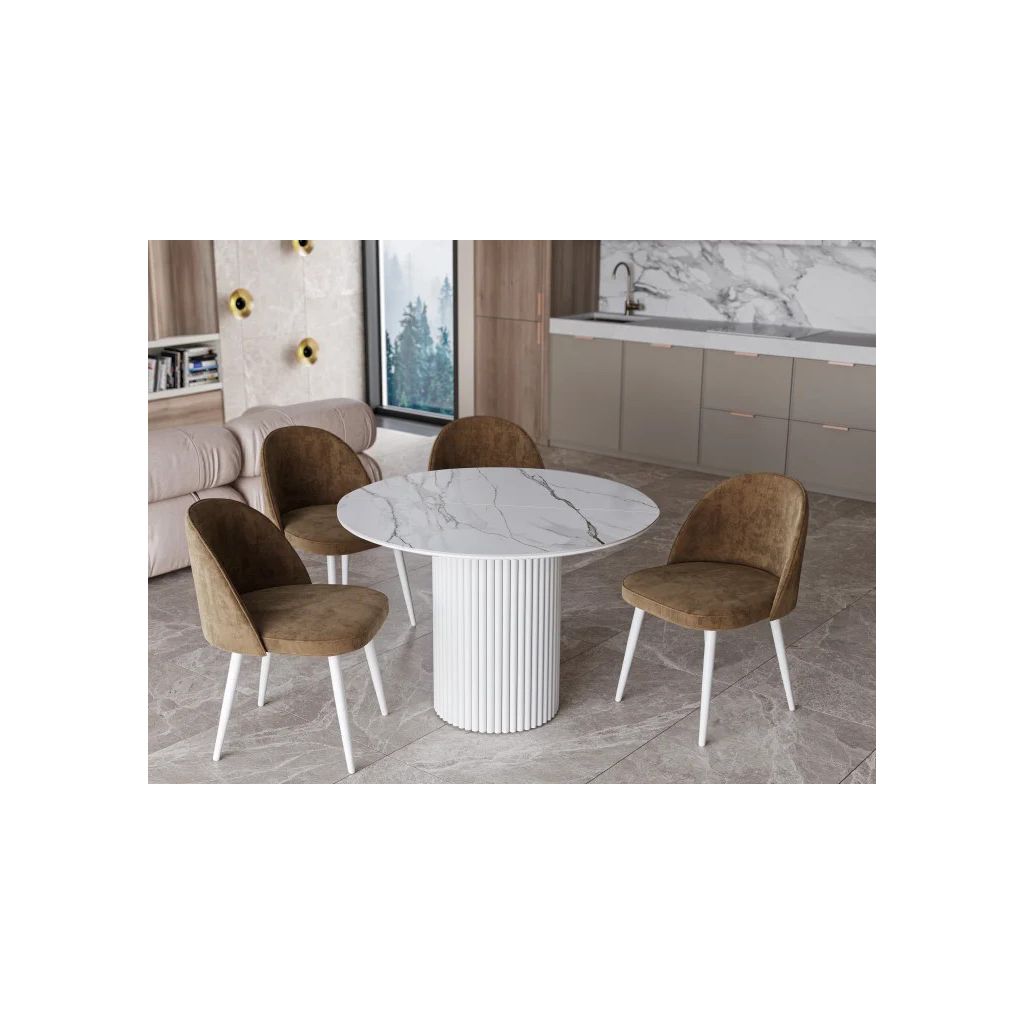 Стол «Корсика» — это массивная круглая модель с премиальной керамической столешницей, созданная для тех, кто ценит эстетику плавных линий и практичность трансформируемой мебели. Центральная круглая опора, надёжный механизм «бабочка» и износостойкая керамика делают его идеальным акцентом вашей кухни или столовой.