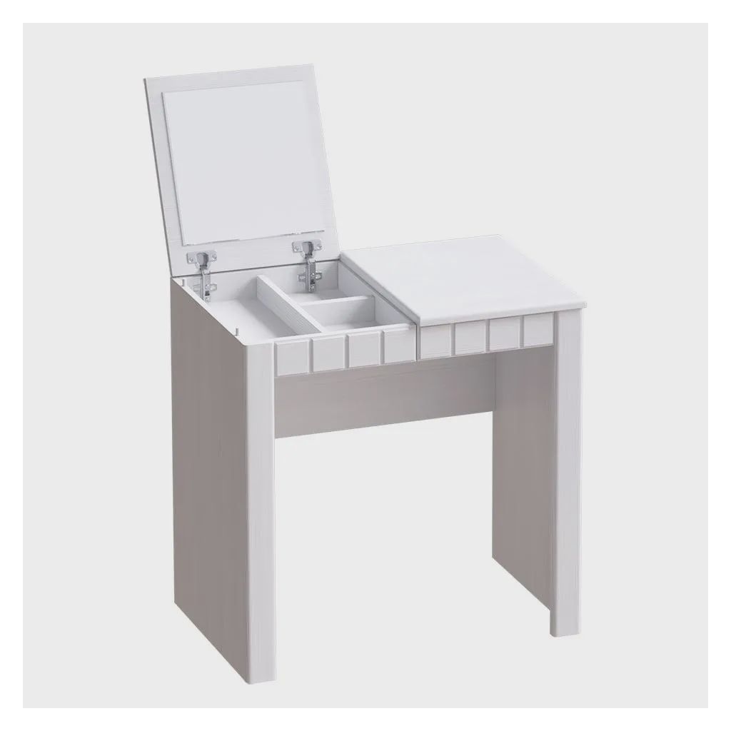 - Откидная столешница с зеркалом: столешница открывается вверх, превращаясь в зеркало, идеально подходящее для нанесения макияжа или укладки волос.
