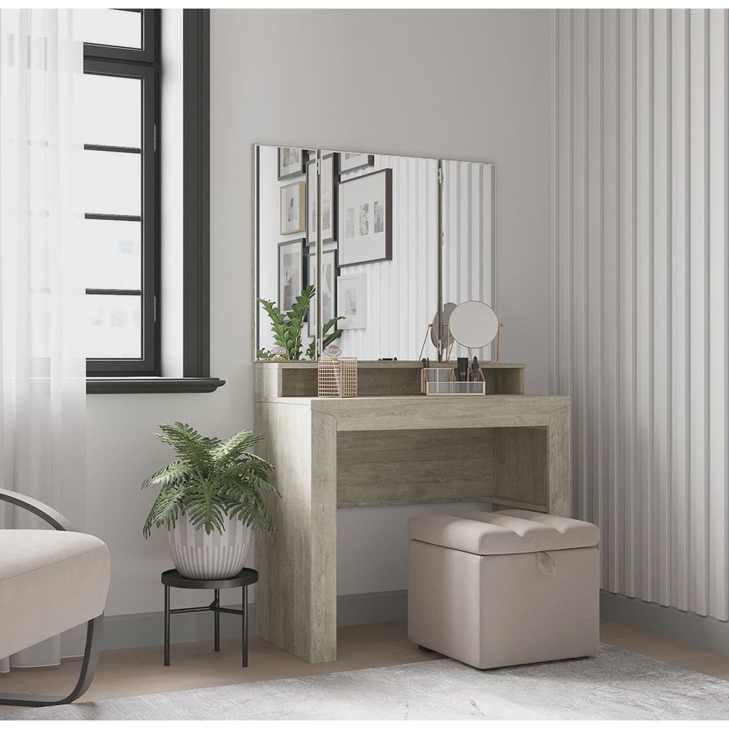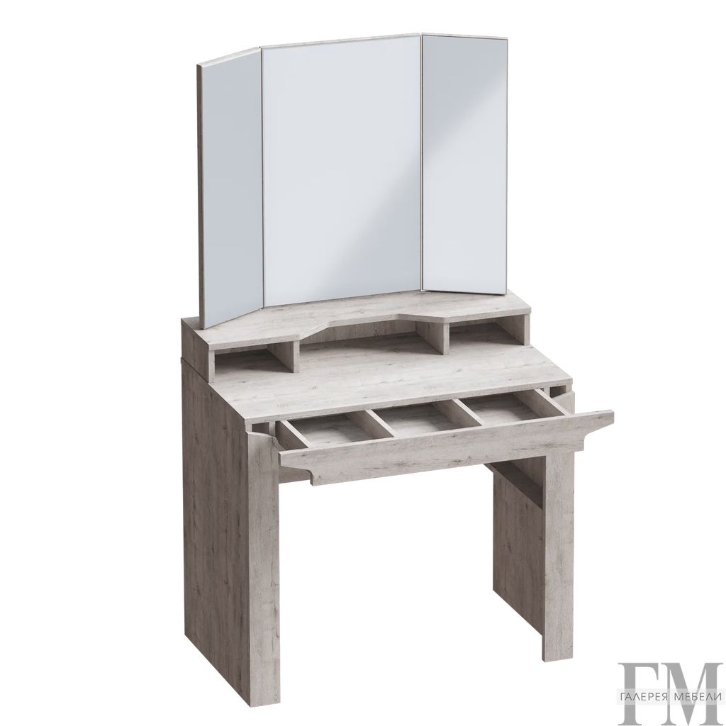 Туалетный столик "Соренто" - это элегантное и функциональное решение для создания комфортной зоны красоты в вашей спальне. Благодаря своим компактным размерам, модель легко впишется в любое пространство, не загромождая комнату, при этом сохраняя практичность и стиль.
