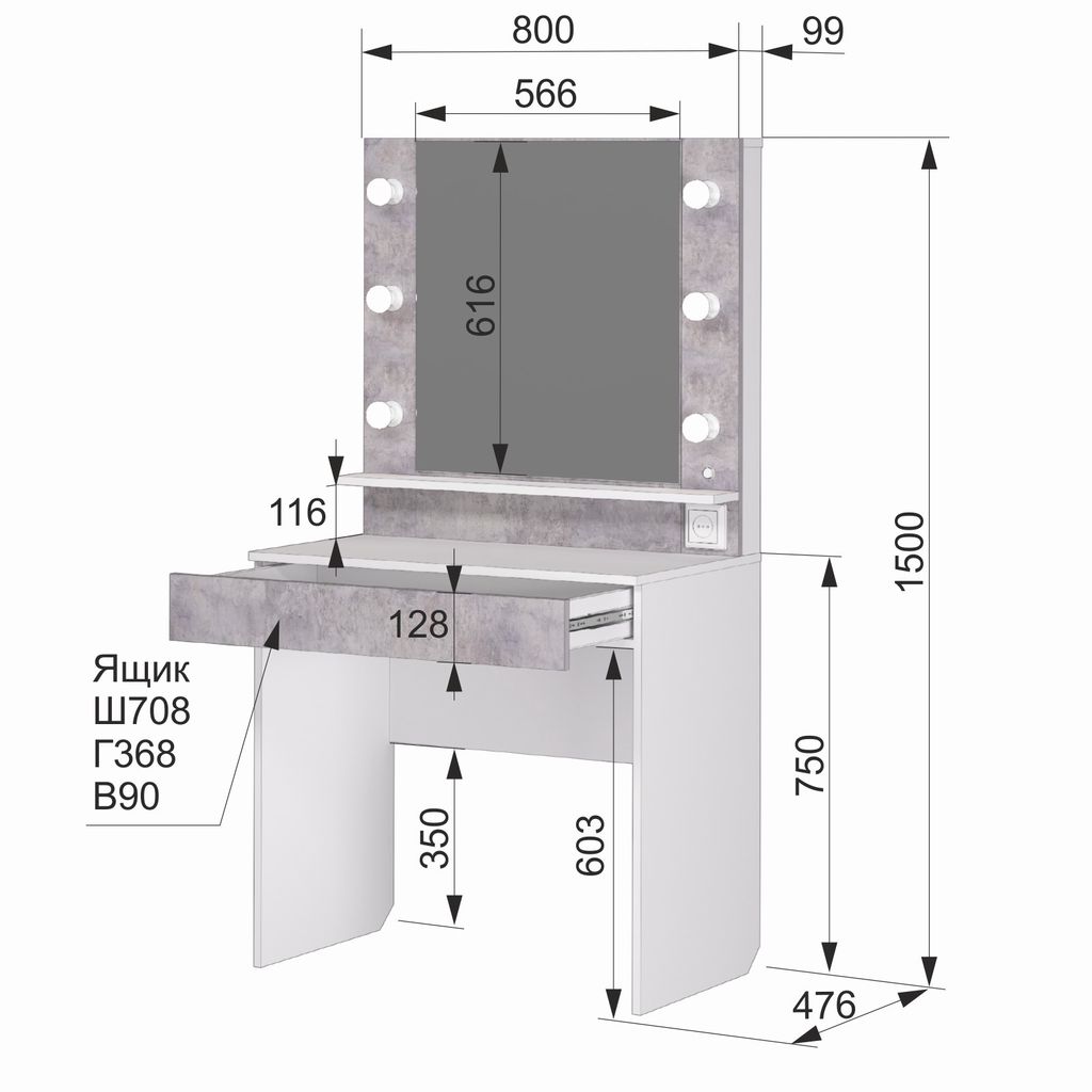 Туалетный столик "Акцент 12" - это идеальное сочетание красоты, практичности и комфорта. Он станет незаменимым помощником в создании вашего ежедневного образа.